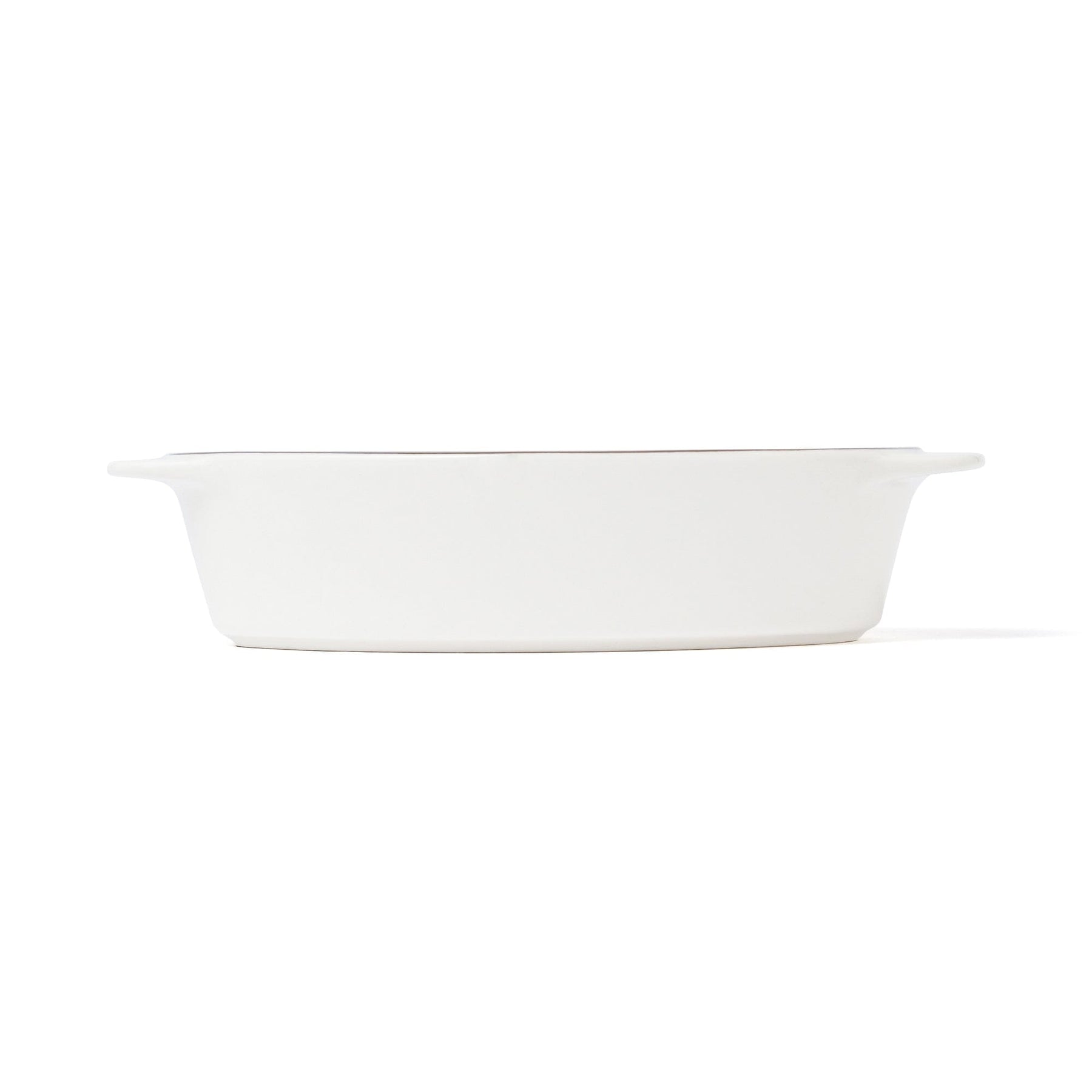 Its moderate depth makes it ideal for hearty gratin dishes. Its convenient size also makes it suitable for use as a deep dish for other purposes.