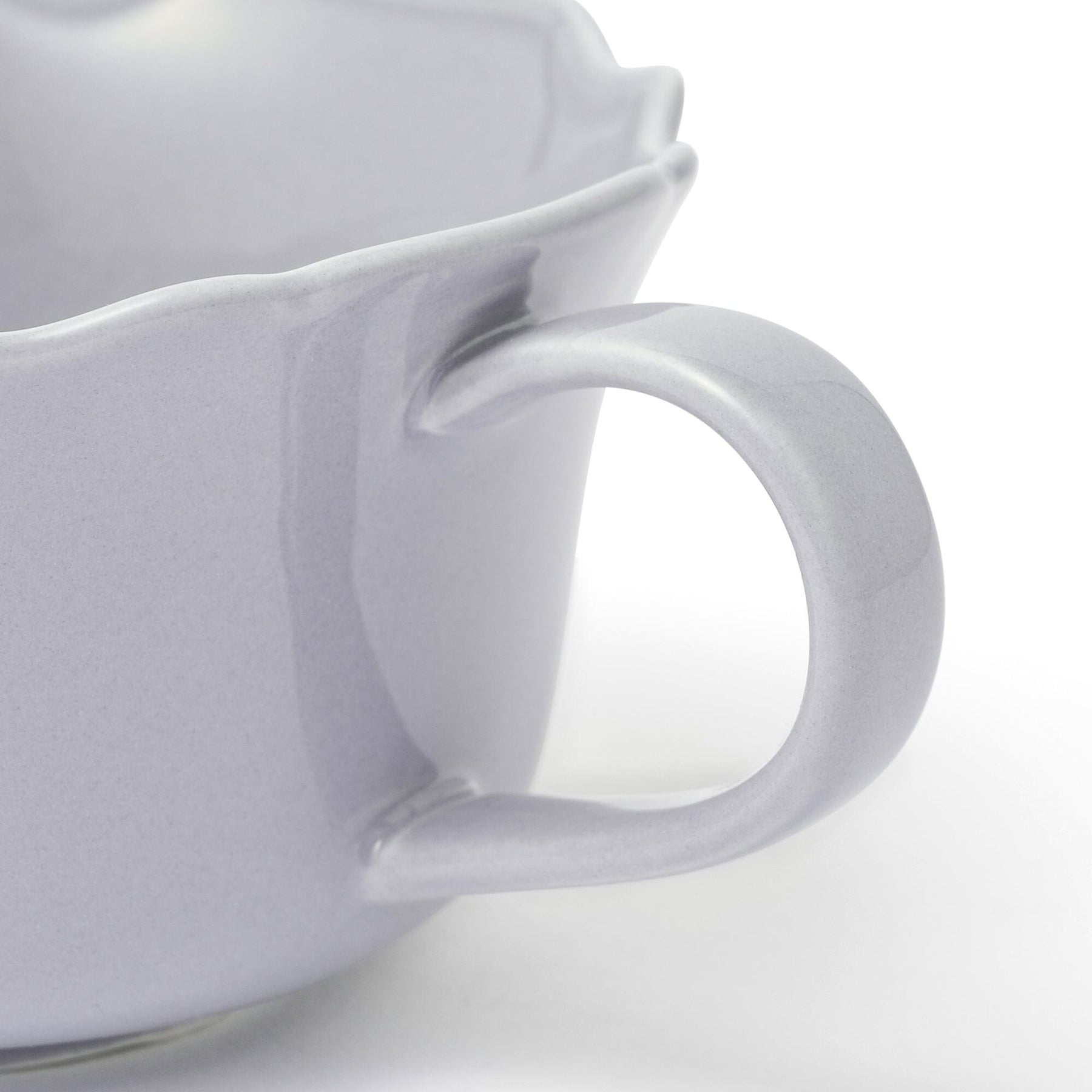 This gorgeous soup cup features a flower-like shape and a plump, voluminous rim.