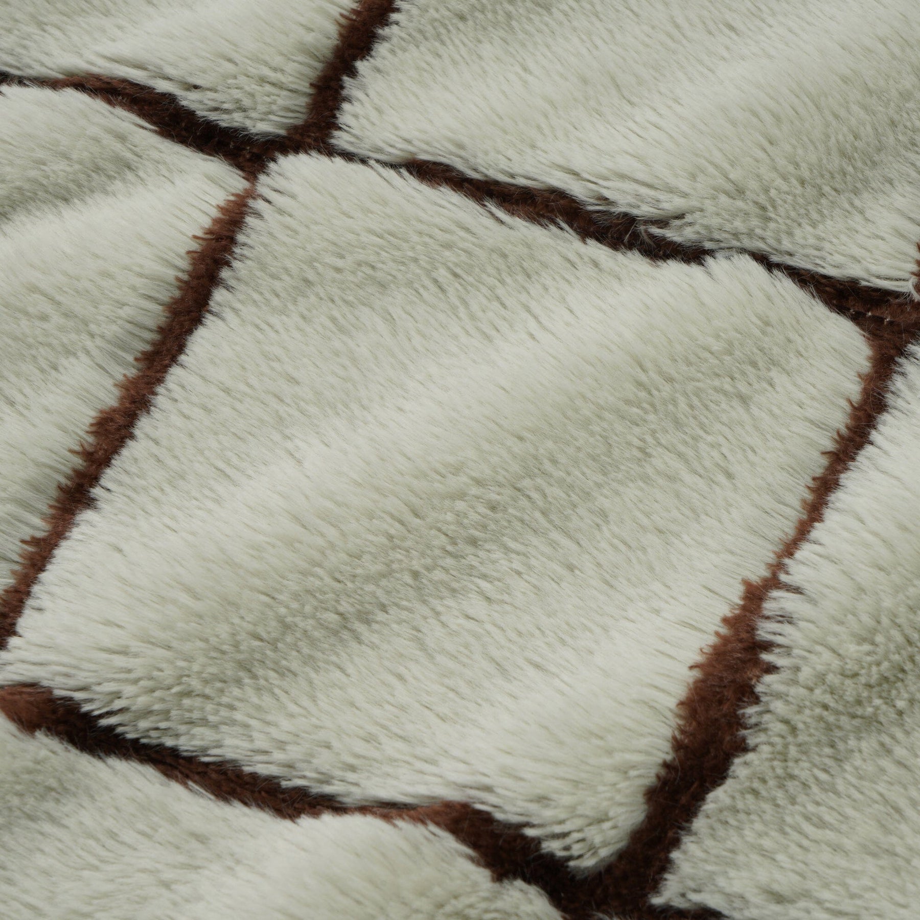 This plaid throw (lap blanket) is crafted from soft, comfortable fur. Its pop colors create a stylish design that blends seamlessly with any interior. The fur on the squares and plaid lines is of varying lengths, allowing the lines to peek out.