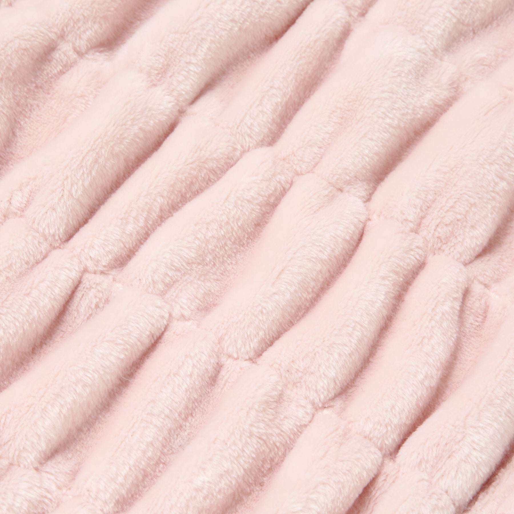 This adorable throw (lap blanket) features a fluffy texture added to microfiber.