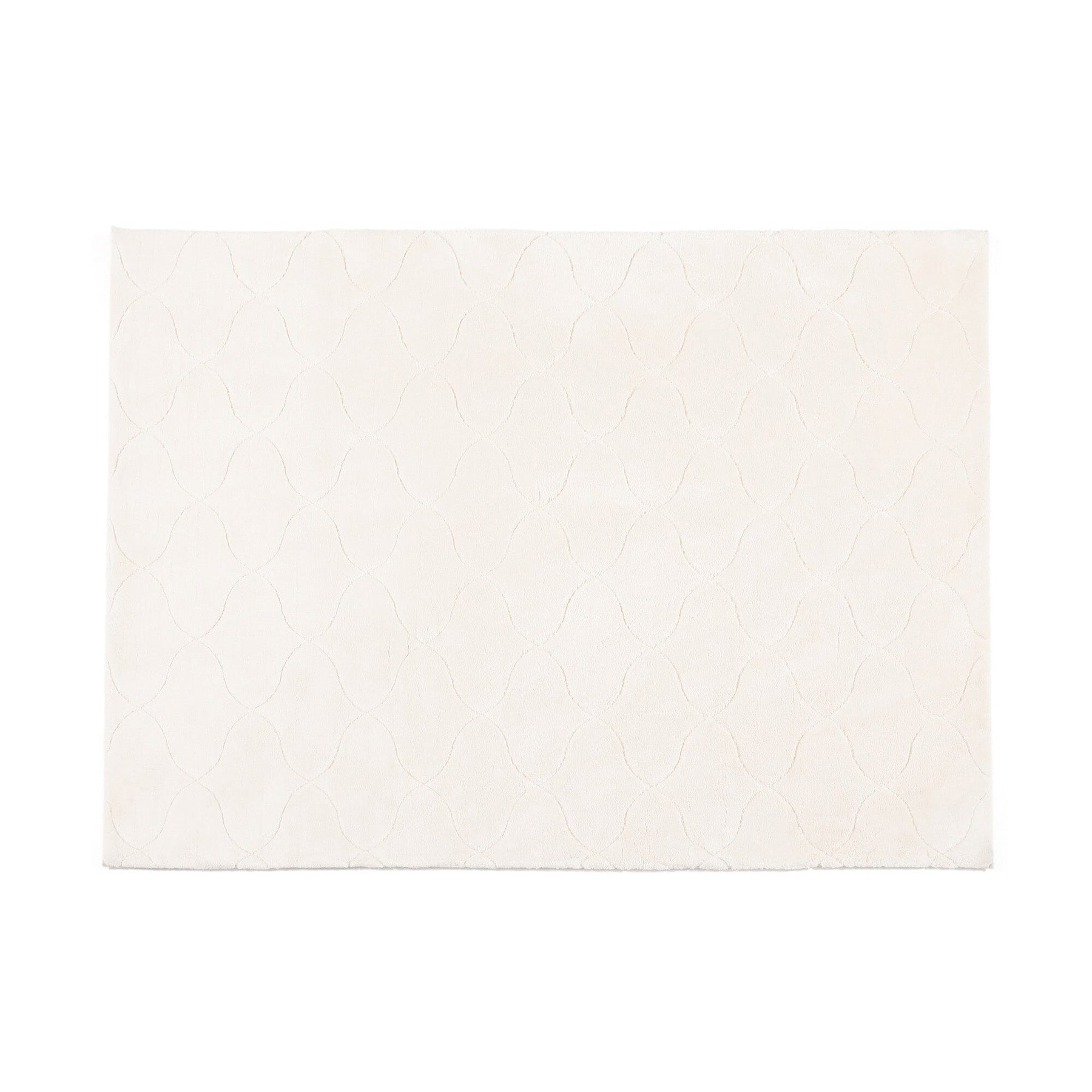 This simple yet stylish rug features an unprecedented high and low design with suede-like piping at the hem.