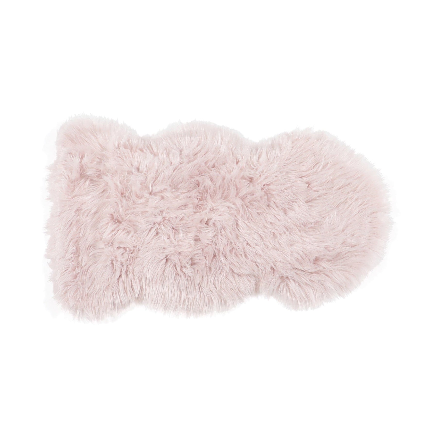 This rug features a wintery design made with faux fur, while retaining the shape of a sheepskin rug.