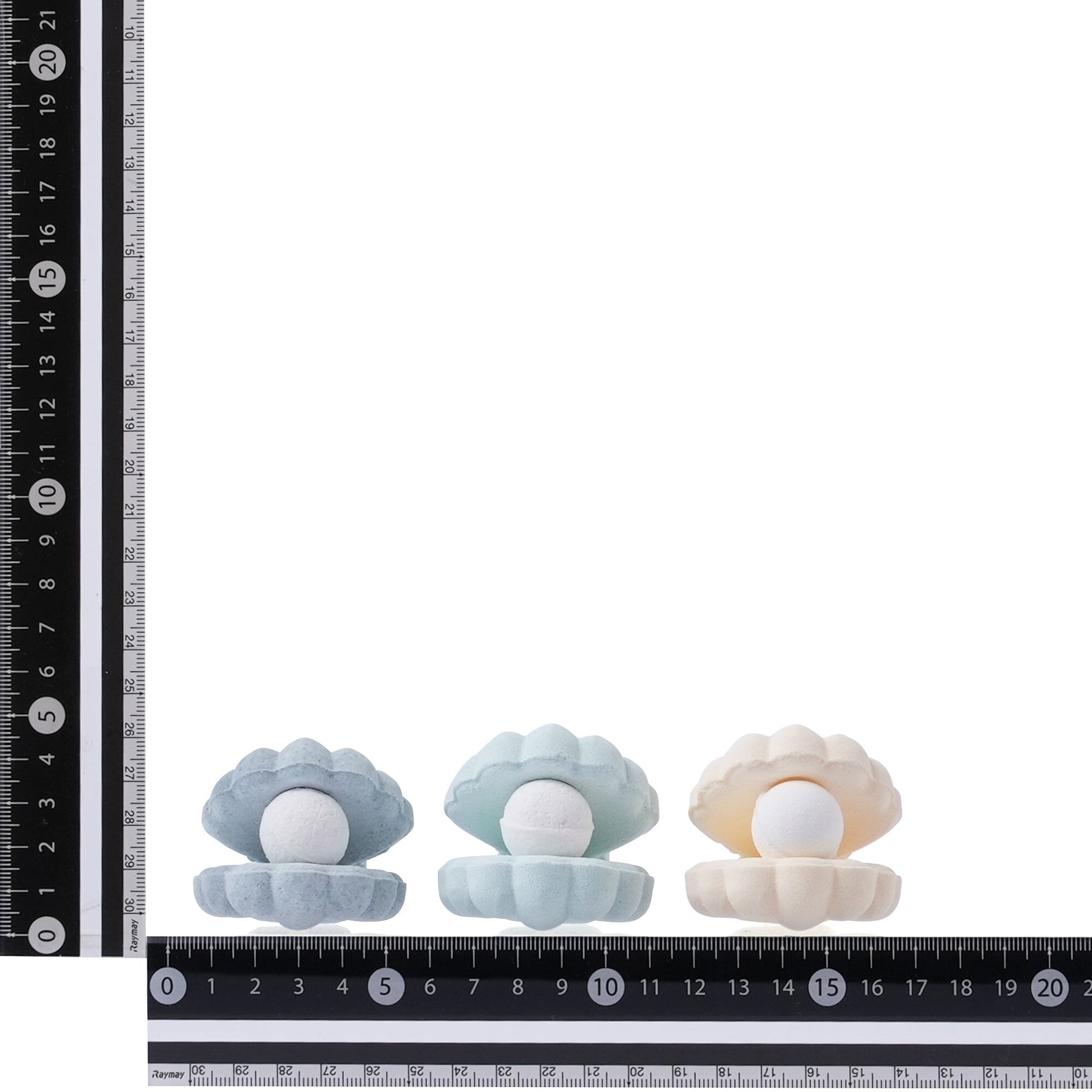 A set of three palm-sized, shell-shaped bath fizzes.Each one comes in a different color, making them visually appealing and uplifting.