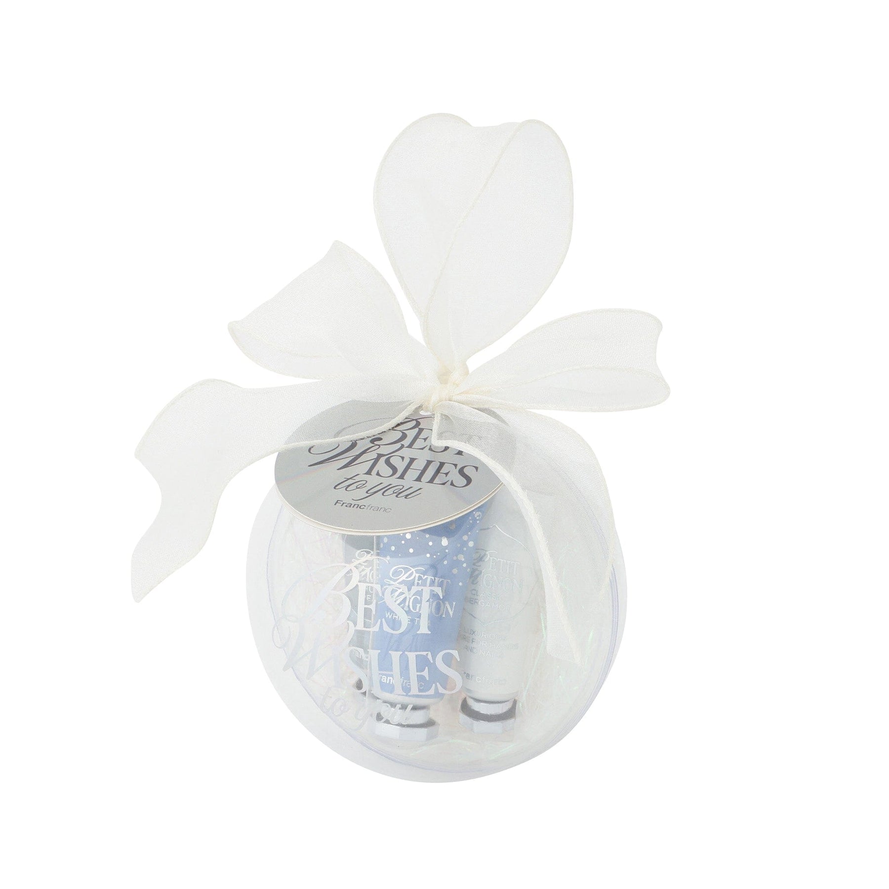 This hand cream set comes in a cute ornament-like package and comes in three different scents.Contains moisturizing ingredients to leave your hands feeling smooth.