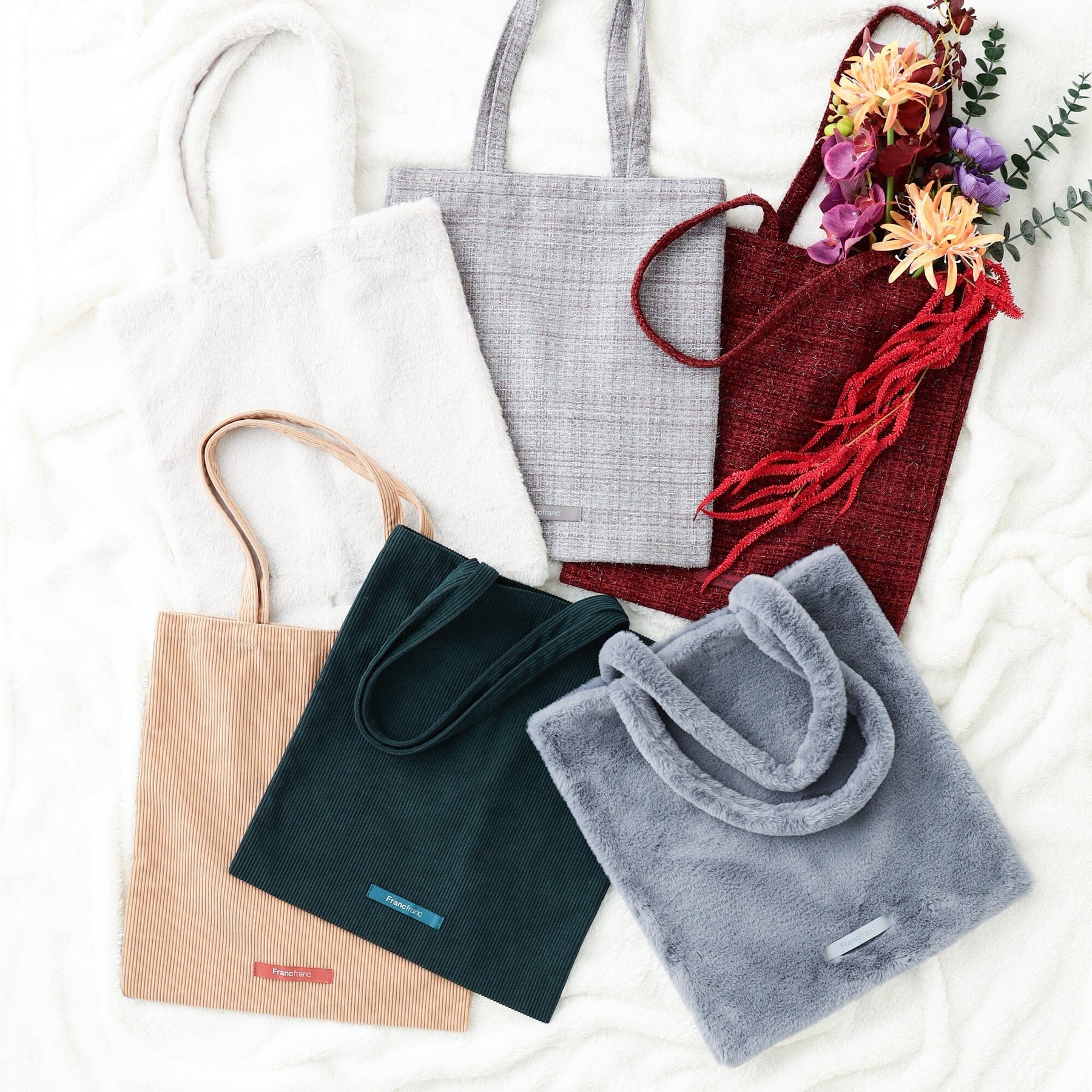 This logo tote series is available in a variety of fabrics to match the season and trends.