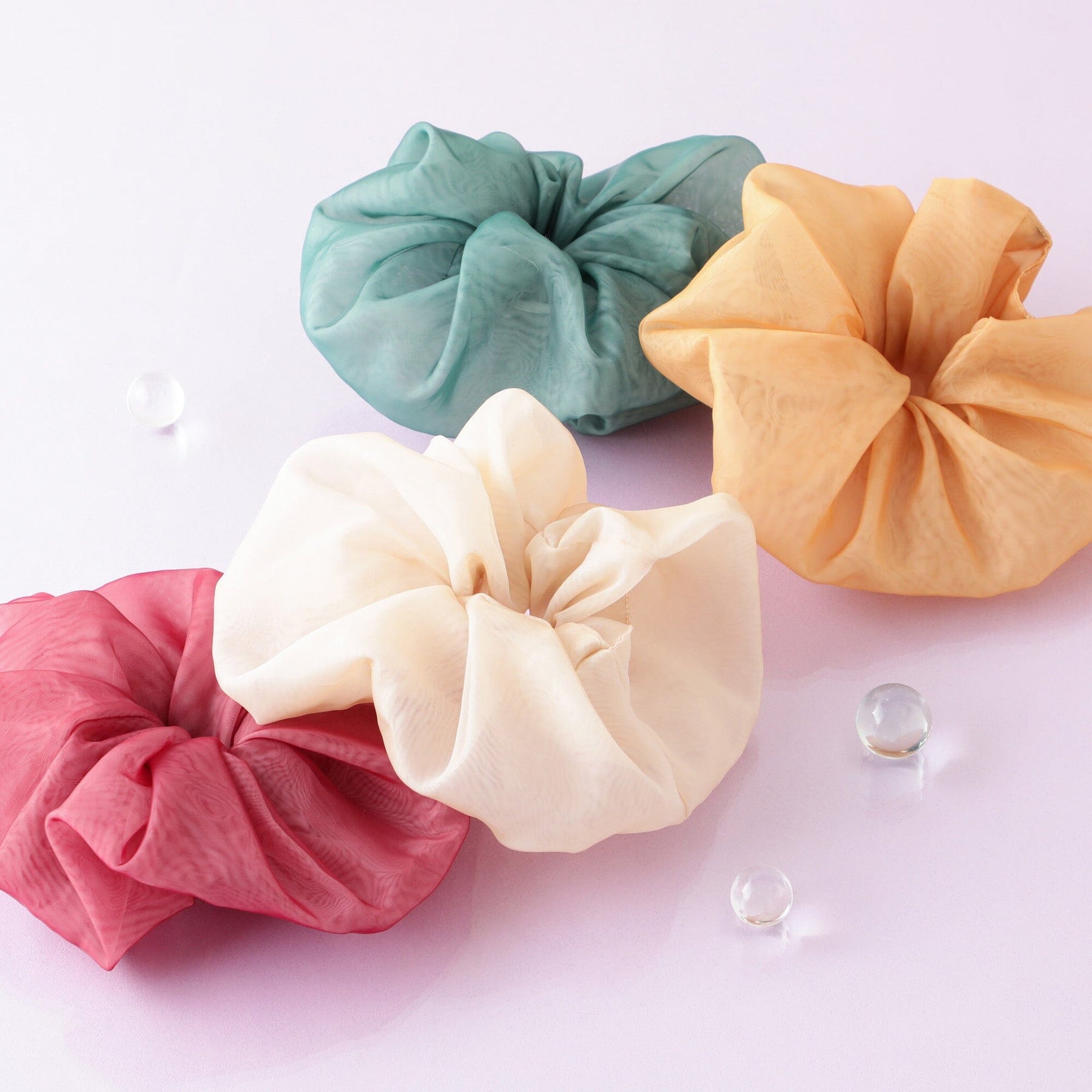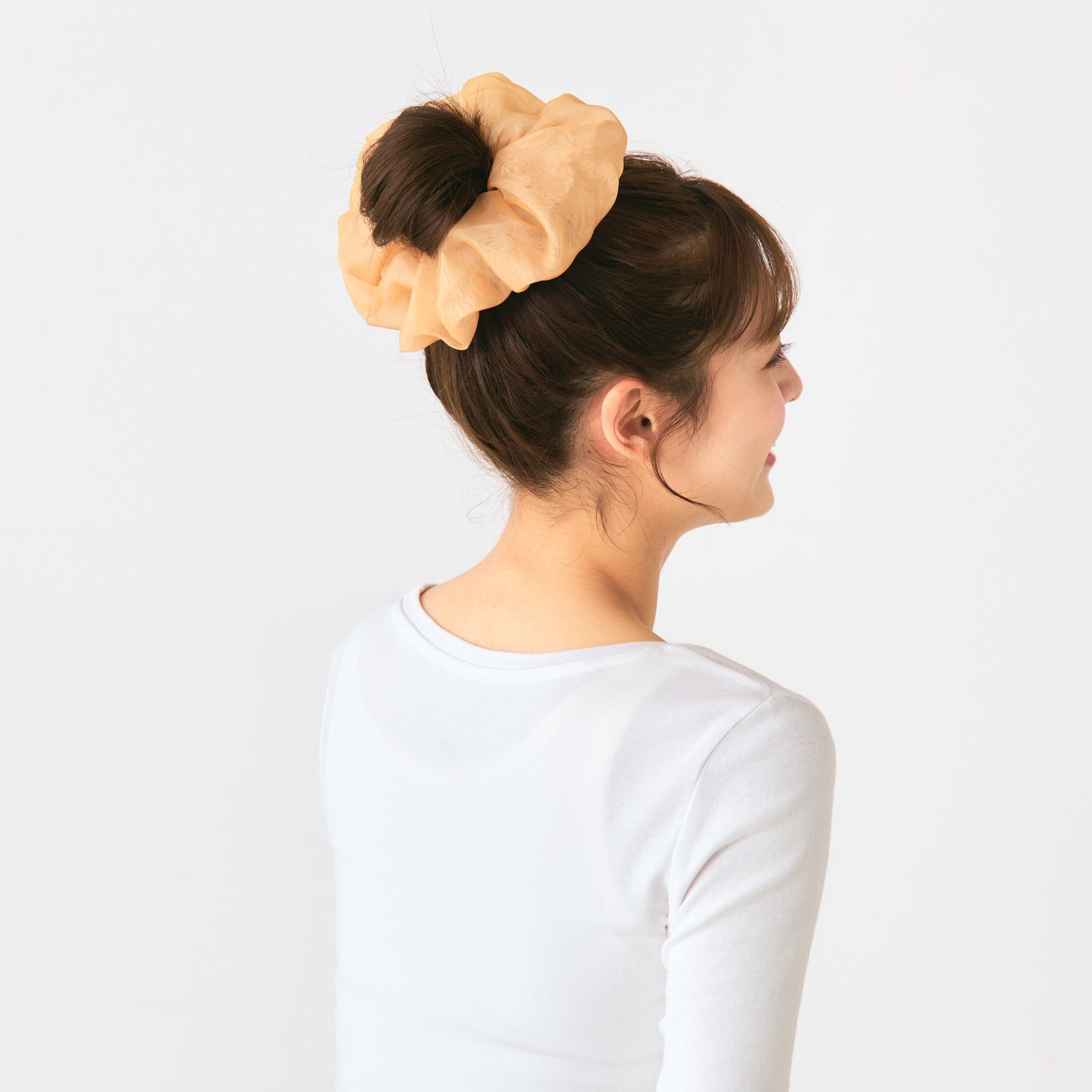 This cute scrunchie features a muted color, sheer material, and a generous size.