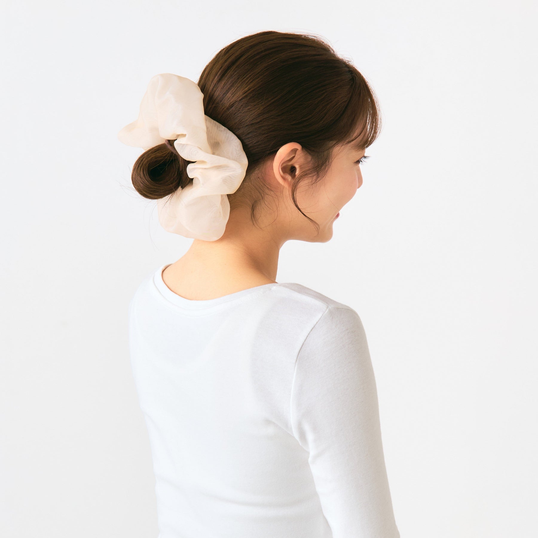 This cute scrunchie features a muted color, sheer material, and a generous size.