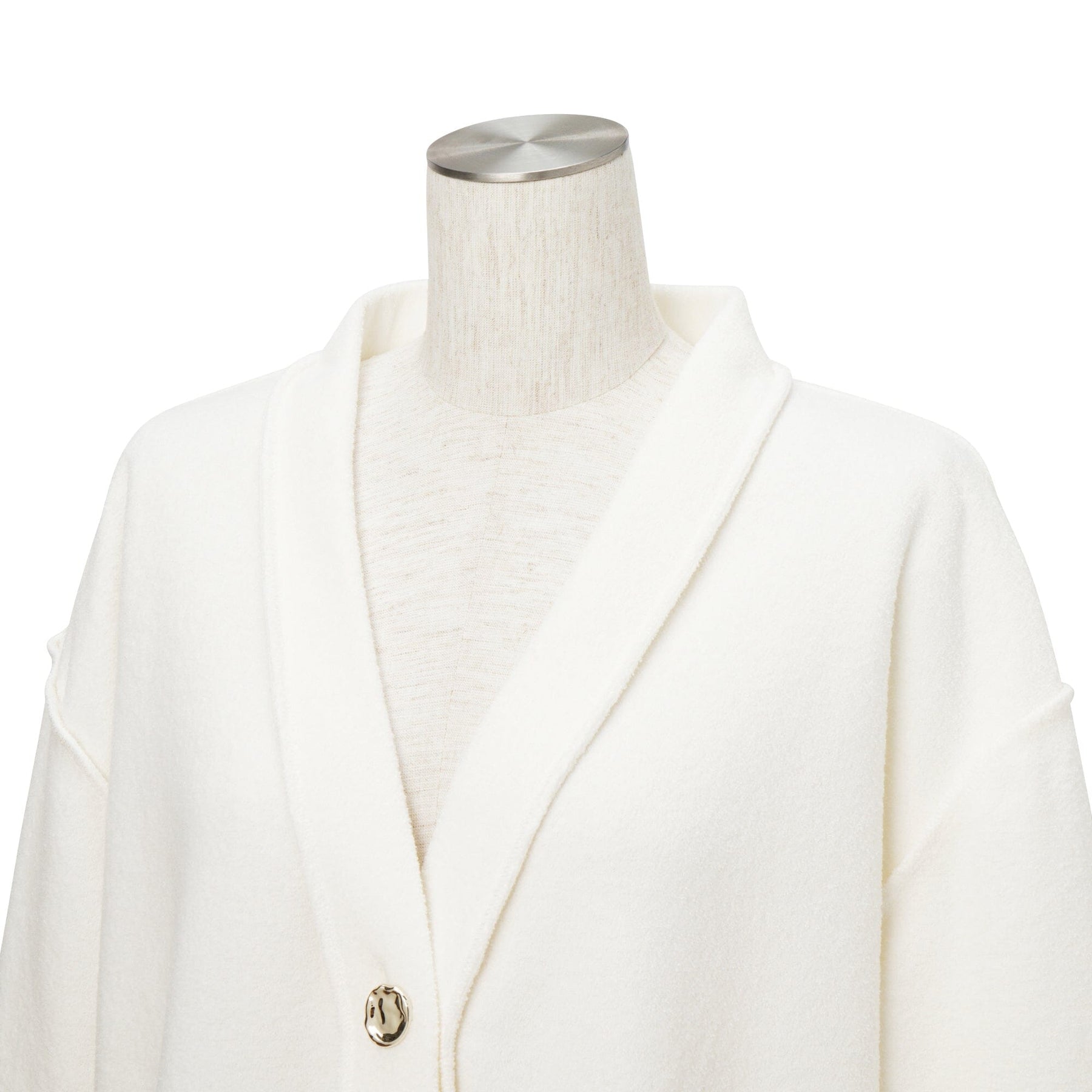 This cardigan is made from a soft, towel-like pile material.The material is suitable for all seasons and is recommended as a casual jacket.