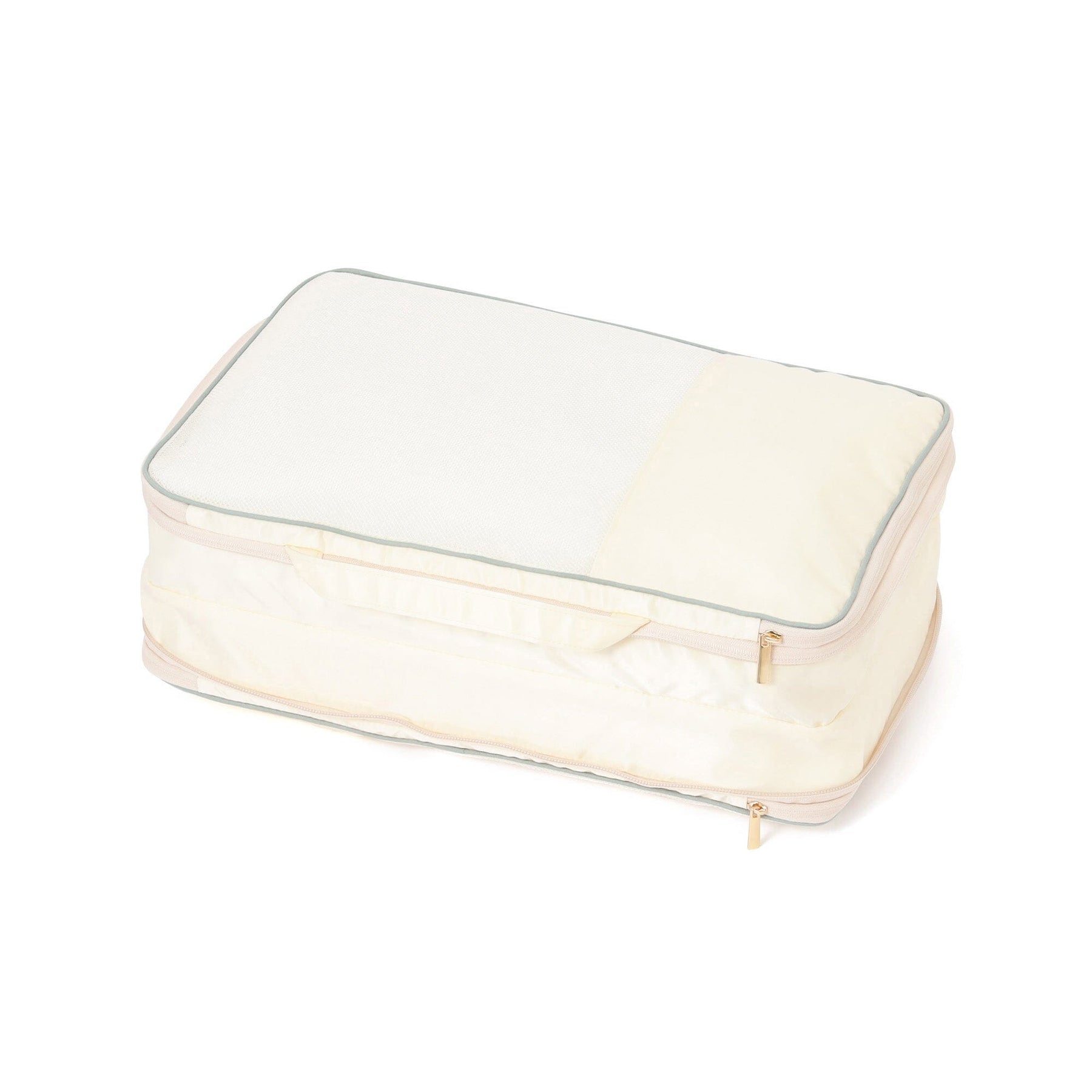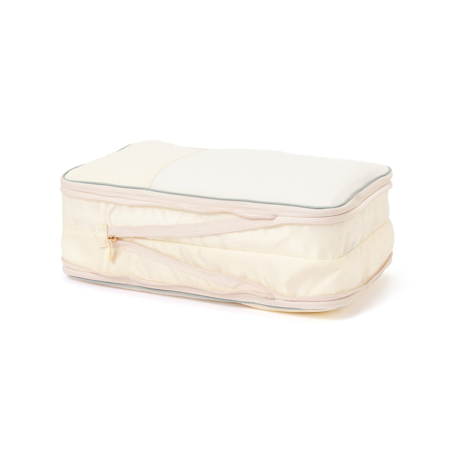 Simply close the zipper on the outside of the organizer halfway around to compress the clothes inside.