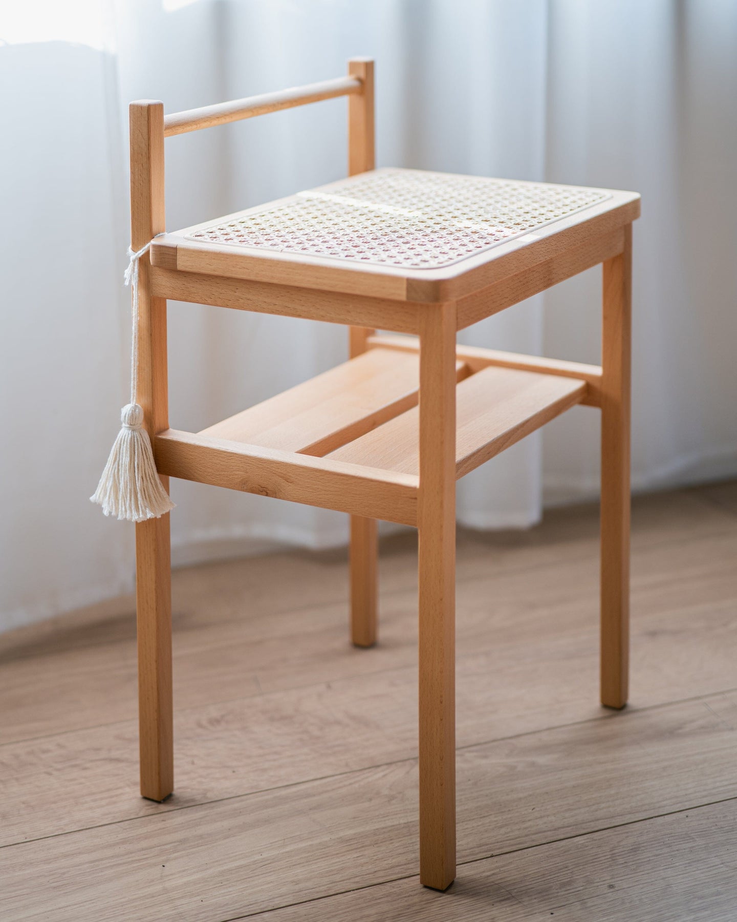 ■The natural materials of beech and rattan create an atmospheric finish. ■Brand motif tassel included. ■Storage shelf under the tabletop. ■Can be used as a sofa side table, bedside table, or decorative shelf in the entryway.