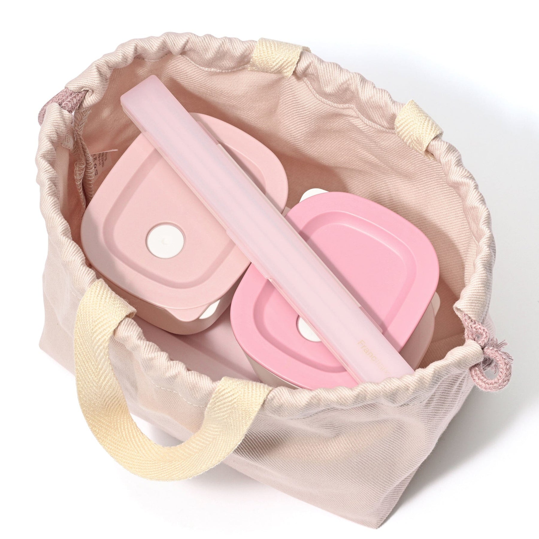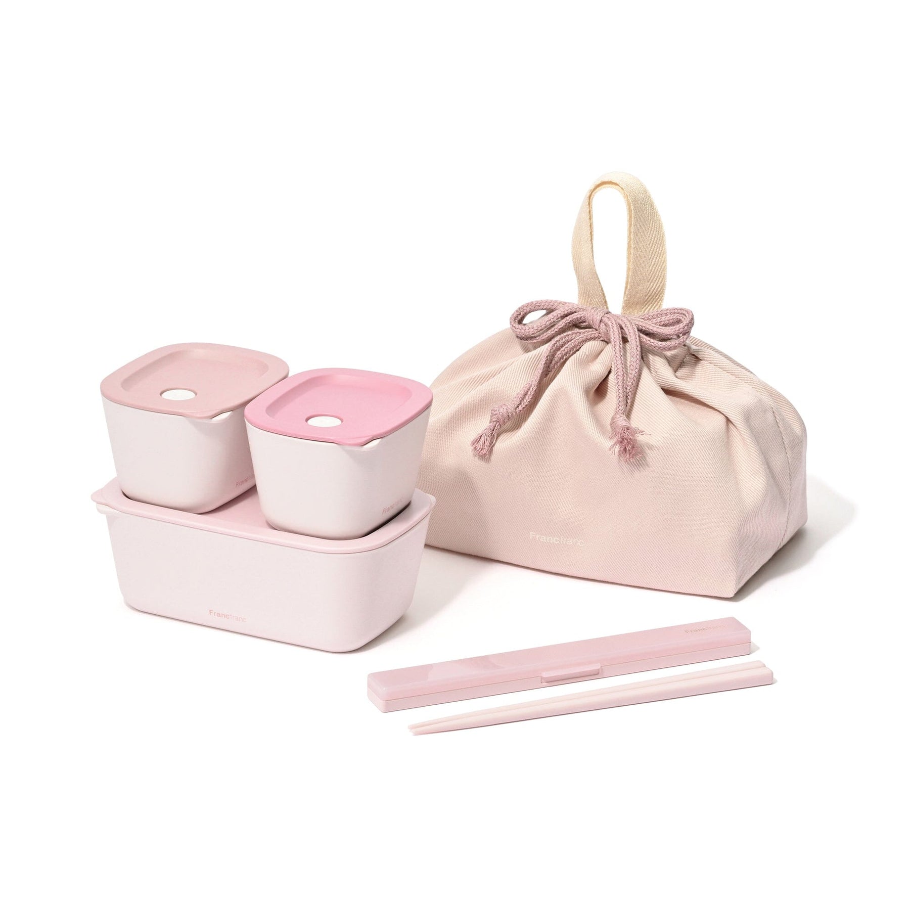 Material: Container lid and body: Polypropylene (with talc), Chopsticks & chopstick case set case body: ABS resin, Case and lid: AS resin, Chopsticks: Acrylic resin, Drawstring bag fabric (outer fabric): Cotton (canvas-like), String: Cotton