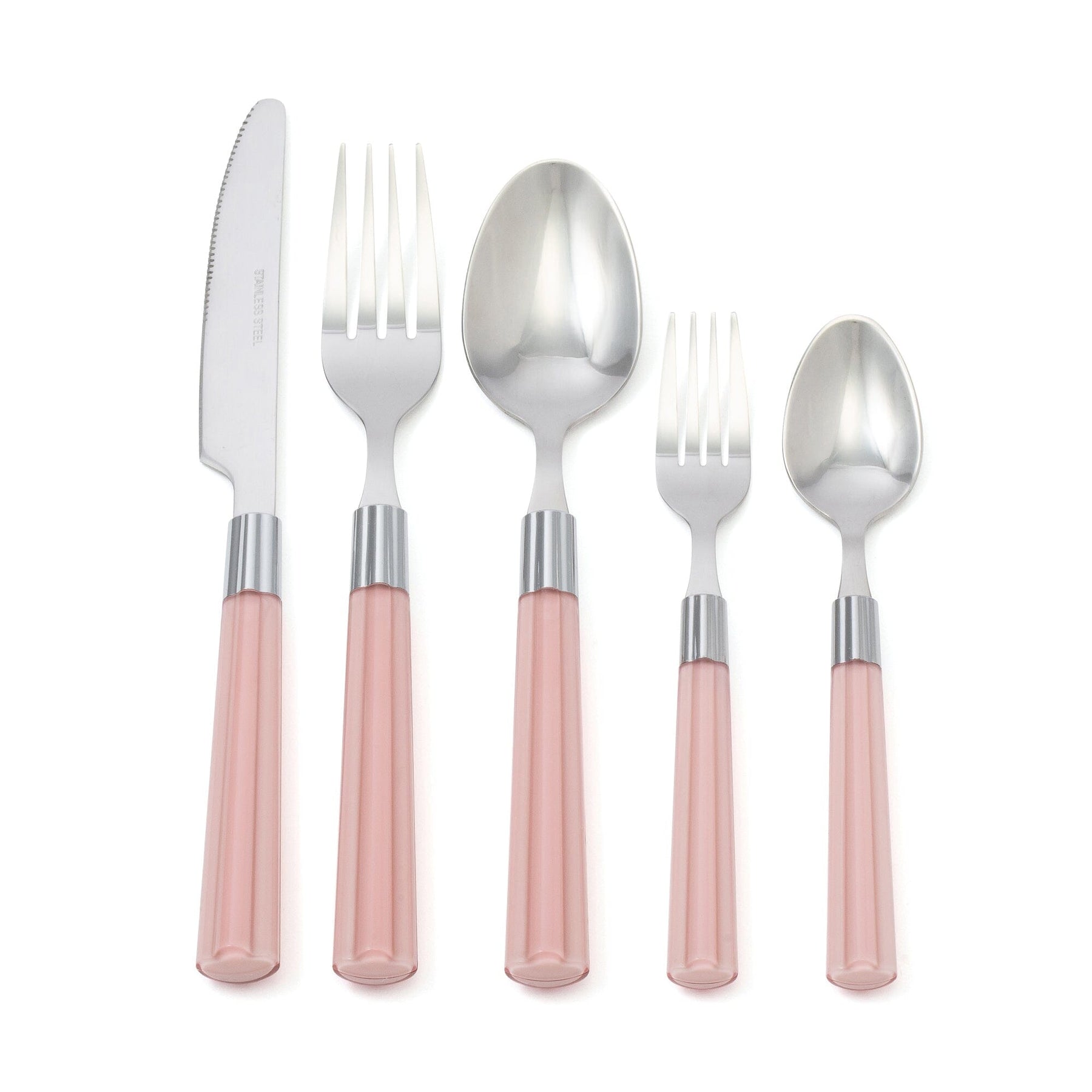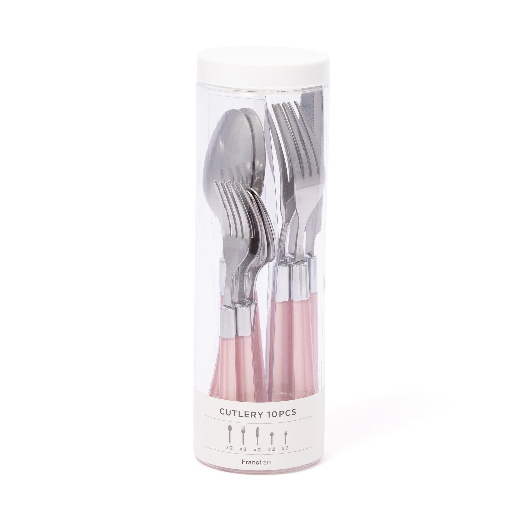 This cutlery set includes two dinner spoons, two forks, two knives, two teaspoons, and two cake forks.