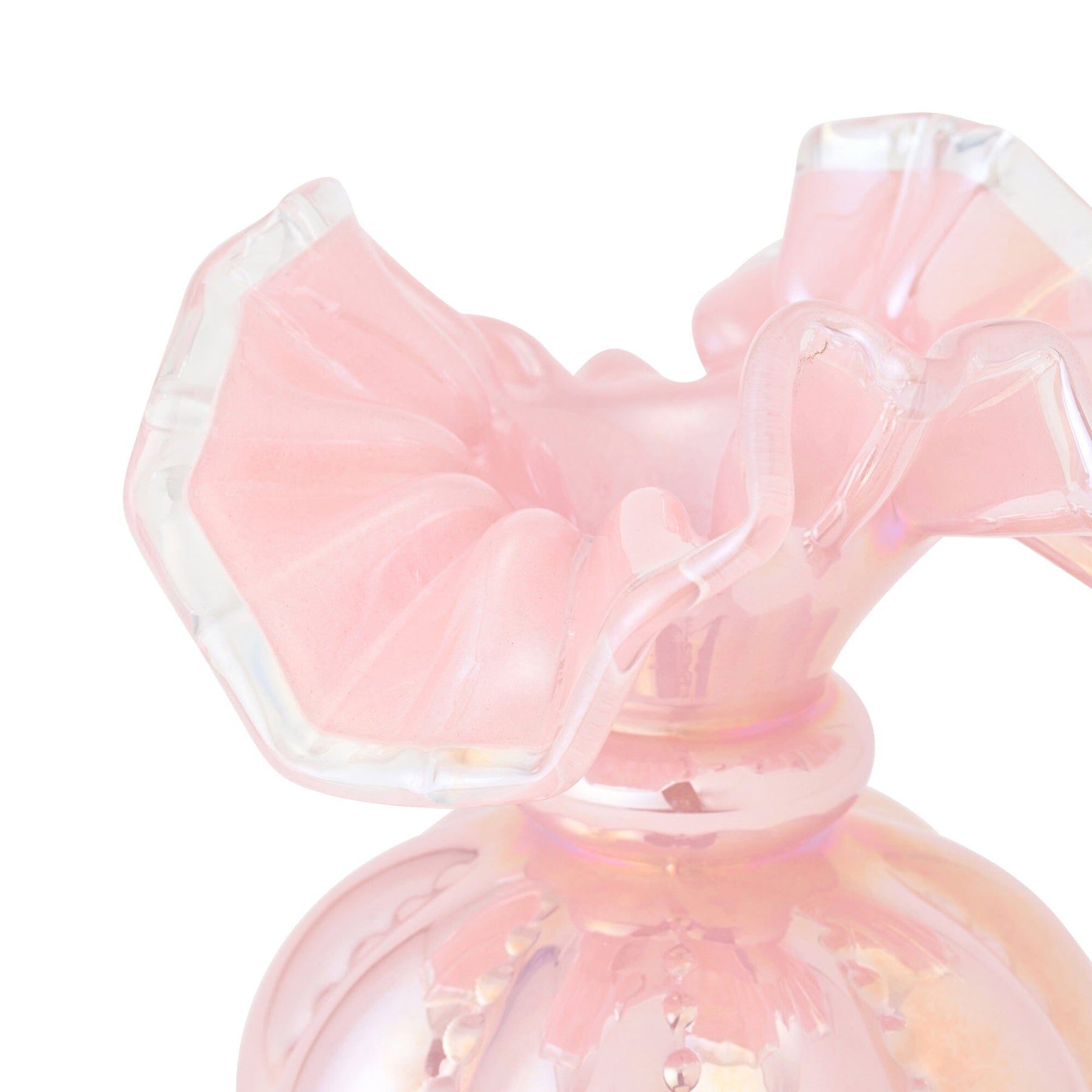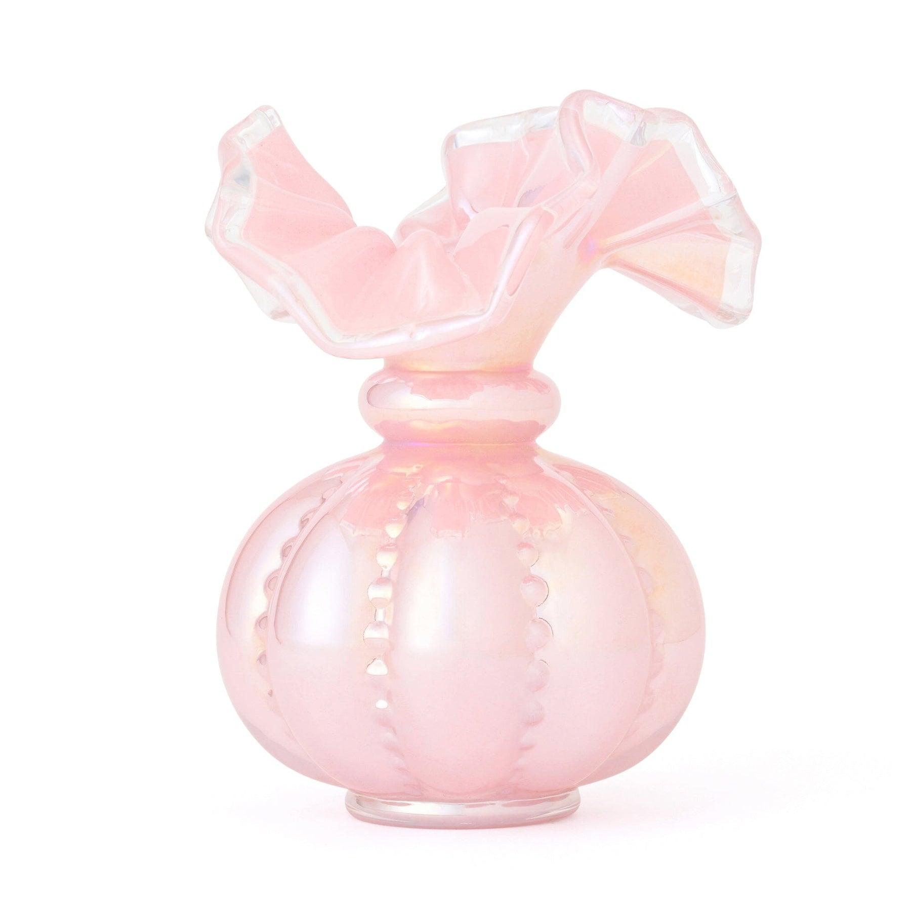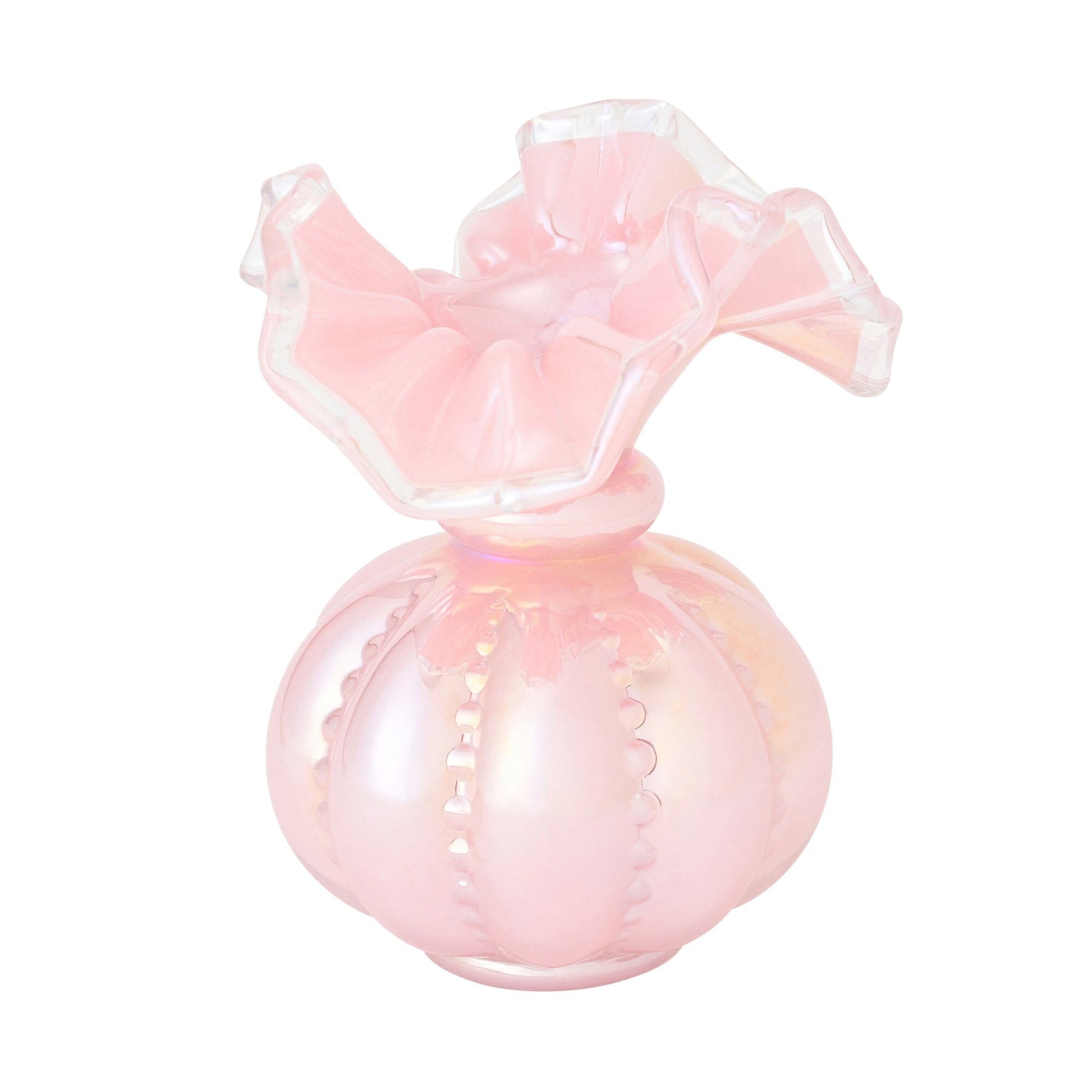 This flower vase features a cute, intricate antique-style frill design.