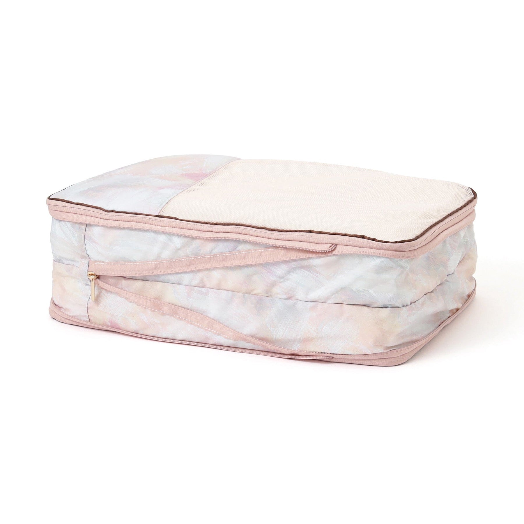 Simply close the zipper on the outside of the organizer halfway around to compress the clothes inside.