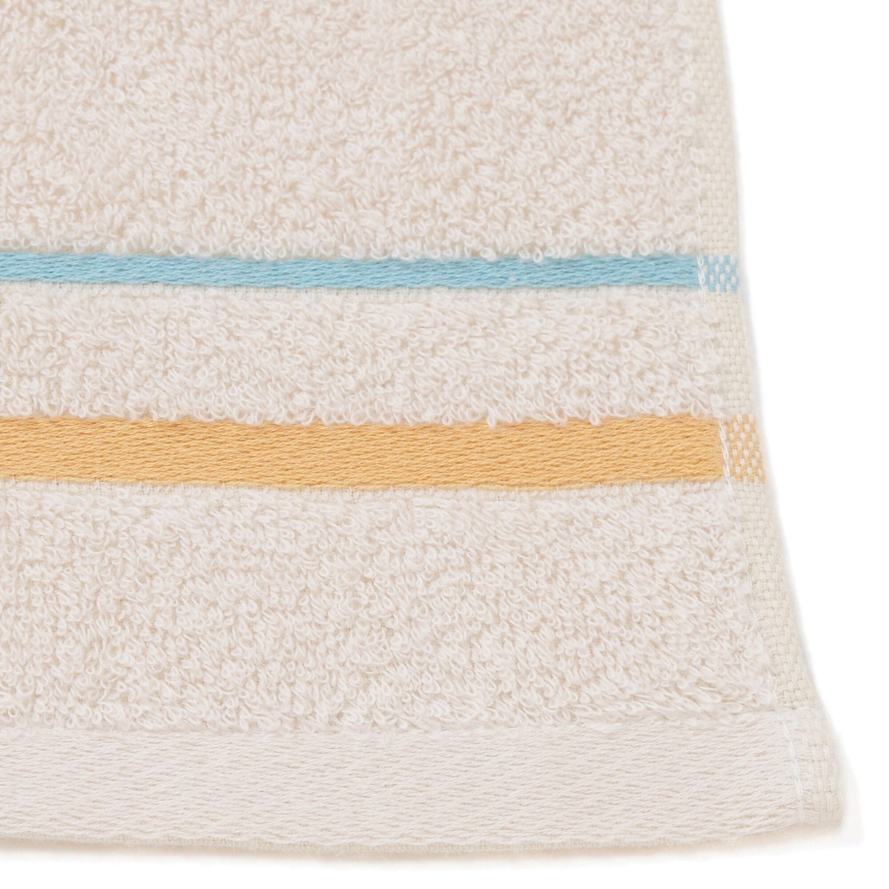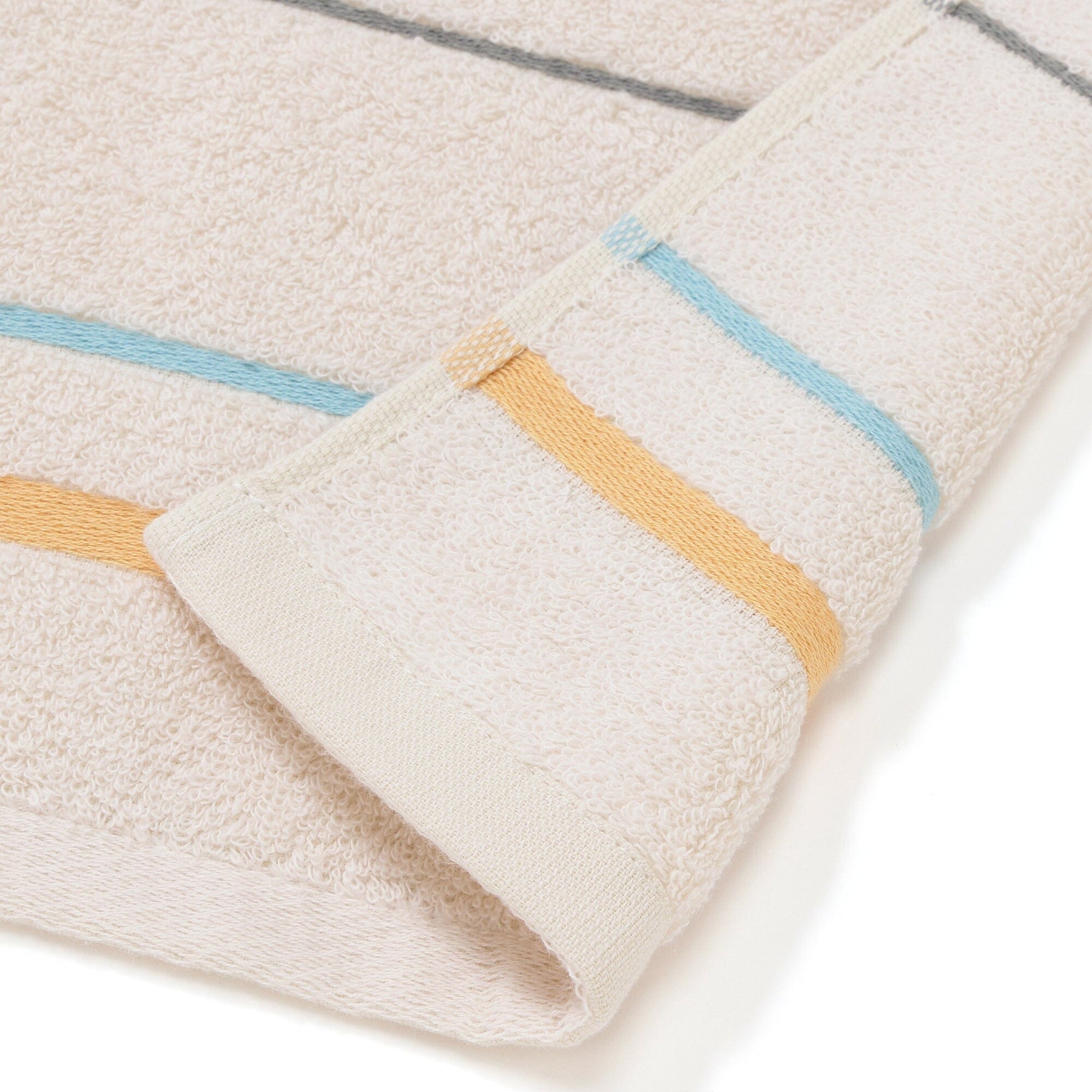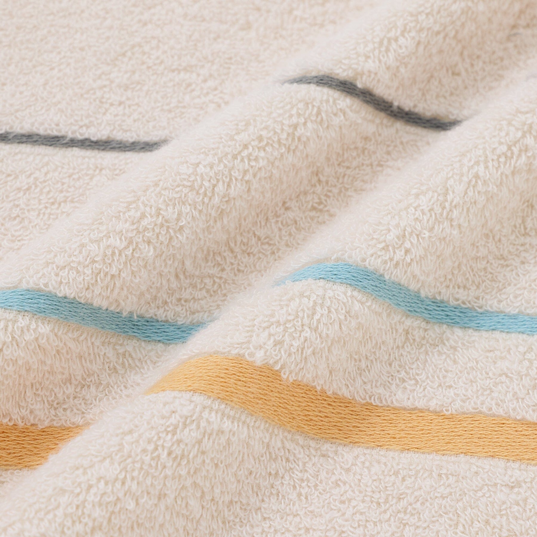 A bath towel designed with pastel colors and accent colors.