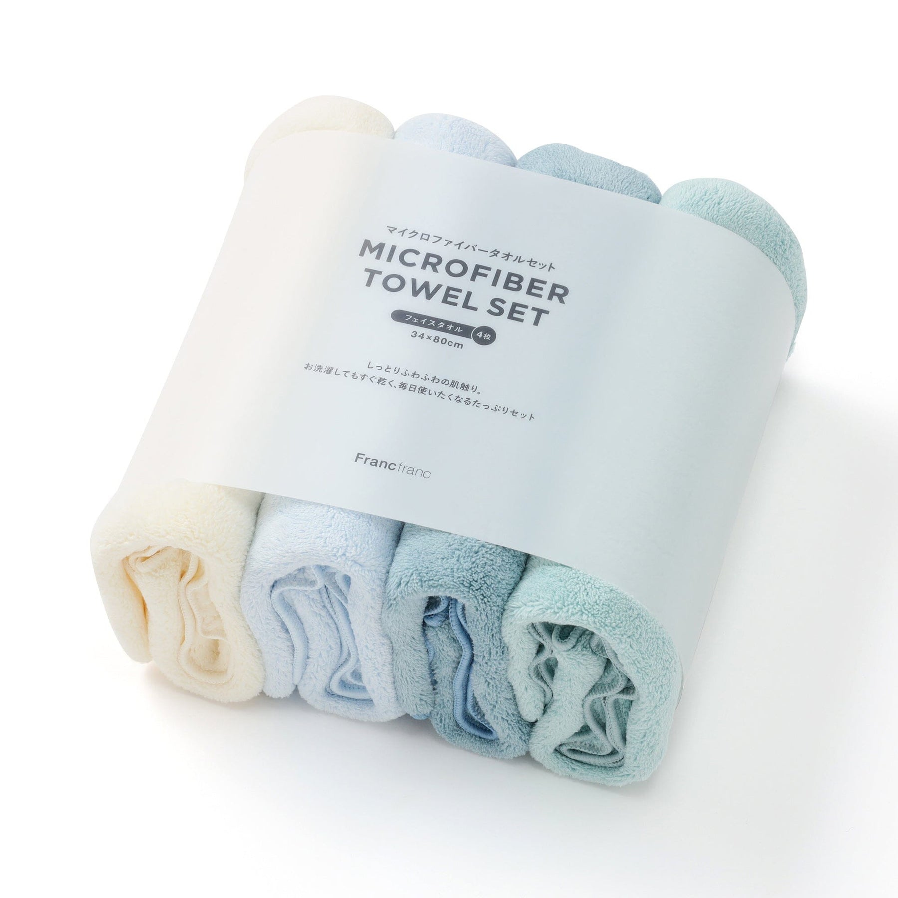 A set of four face towels in Francfranc's signature colors.Made of soft microfiber material.