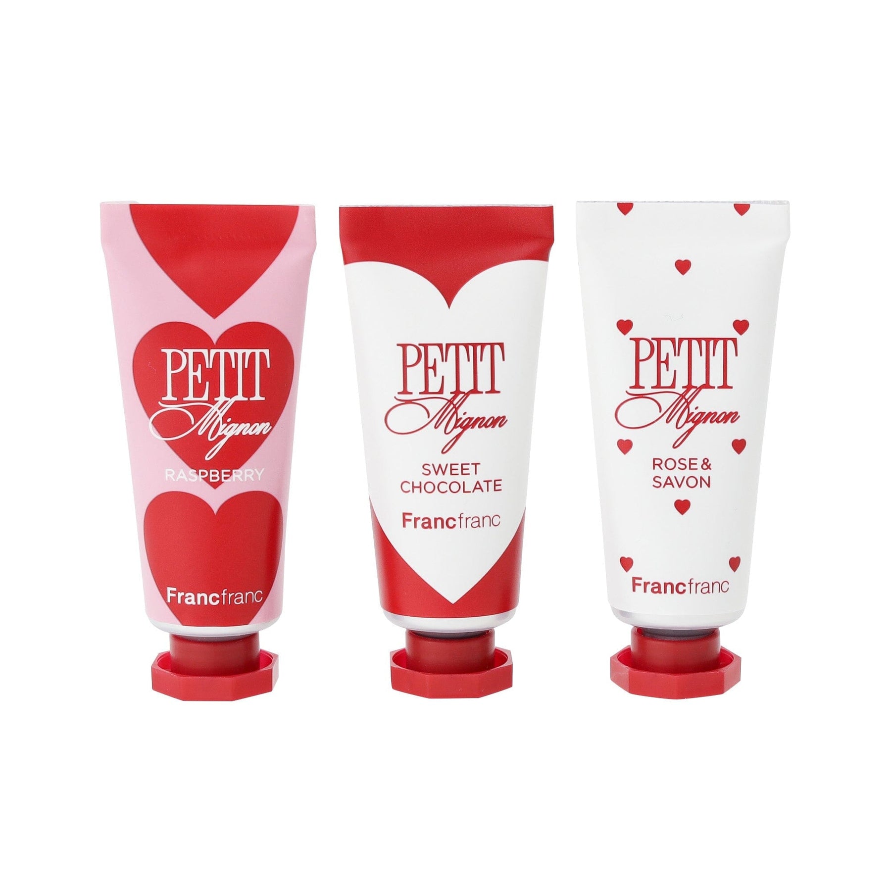 A hand cream set in a round, clear ornament-like container that comes in three different scents.Contains moisturizing ingredients to leave your hands feeling smooth.