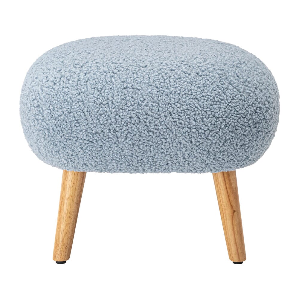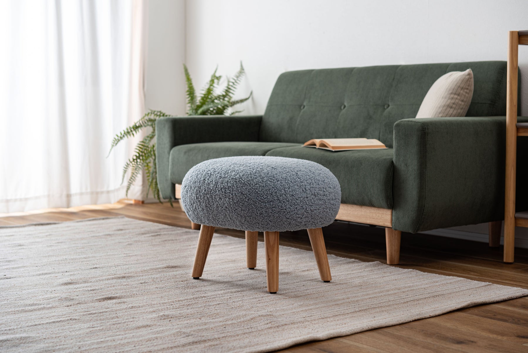 ■A cute stool with a simple yet playful, round shape. ■The combination of softly colored boucle fabric and natural wooden legs makes it easy to incorporate into a variety of rooms and a great accent piece for any space. ■The charming round shape makes it look like it could start to totter away at any moment. ■A firm and comfortable seat. ■A slightly lower seat that allows for a relaxed seating position without taking up too much space. ■Made with soft, fluffy boucle fabric that you'll want to touch forever. ■Not only can it be used as a stool, but it can also be used as an ottoman when combined with a sofa. ■Adjusters on the underside of the legs help to adjust any wobbling when sitting.