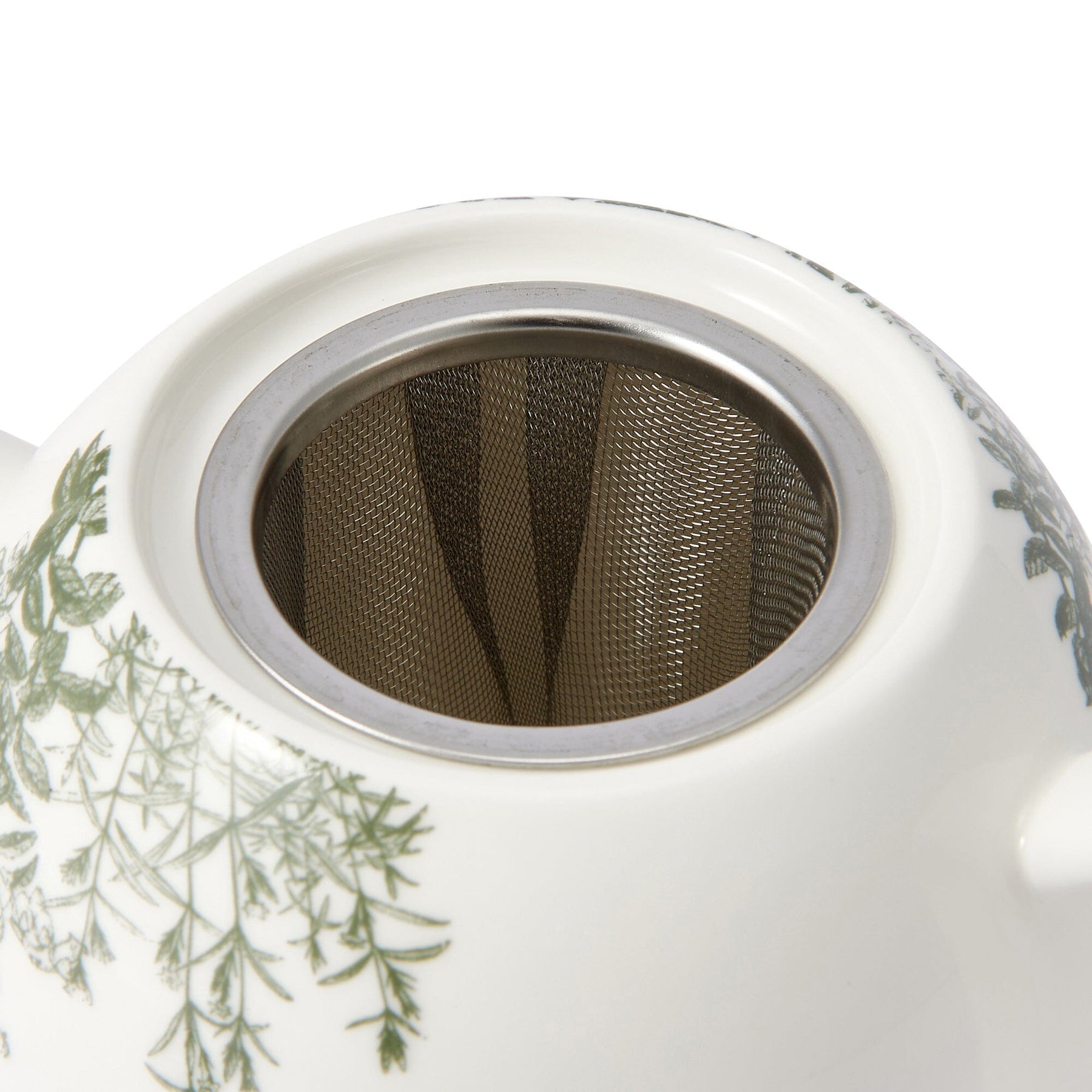 Size: W110×D190×H133mm Capacity: 650mlMaterial: Body: New bone china, Tea strainer: Stainless steel