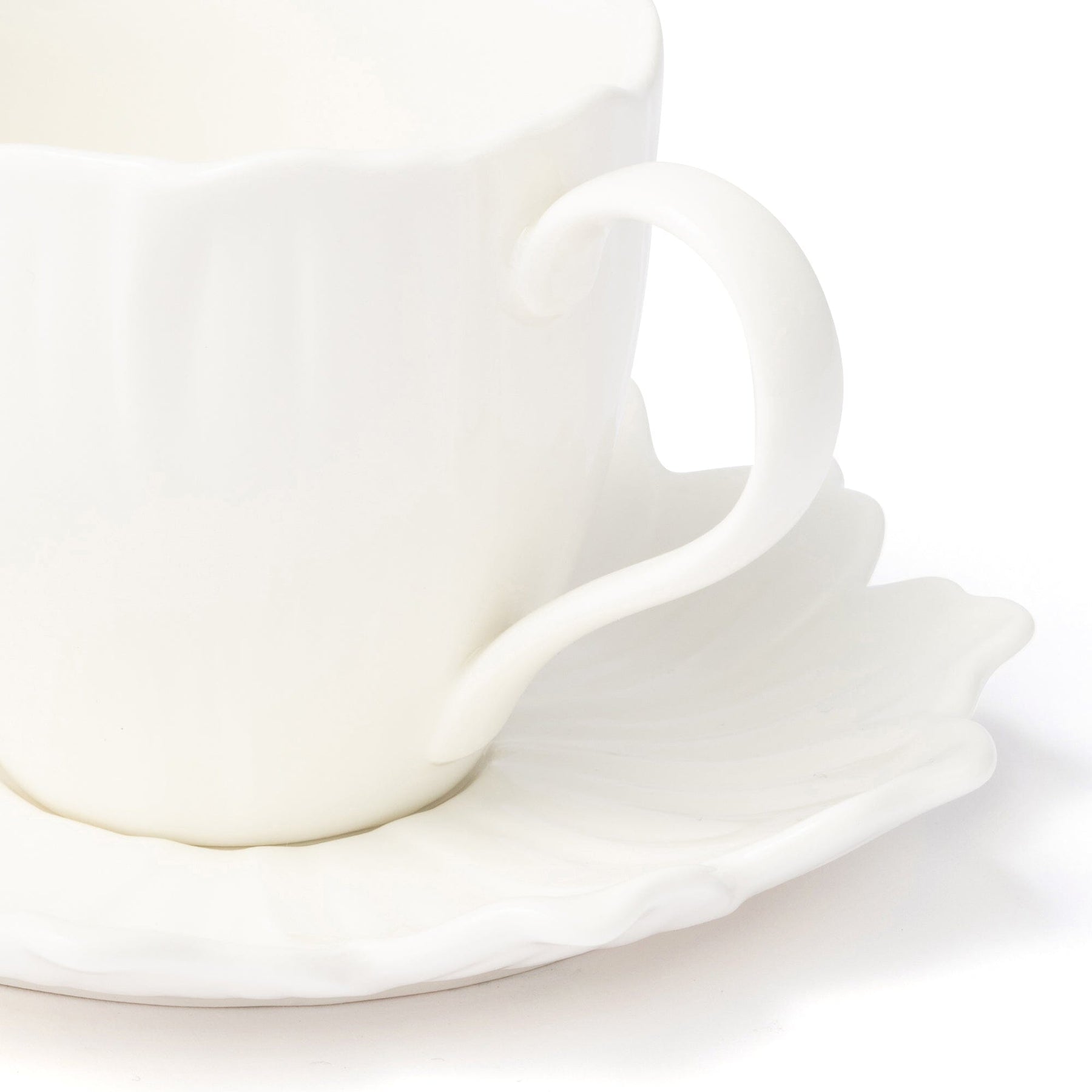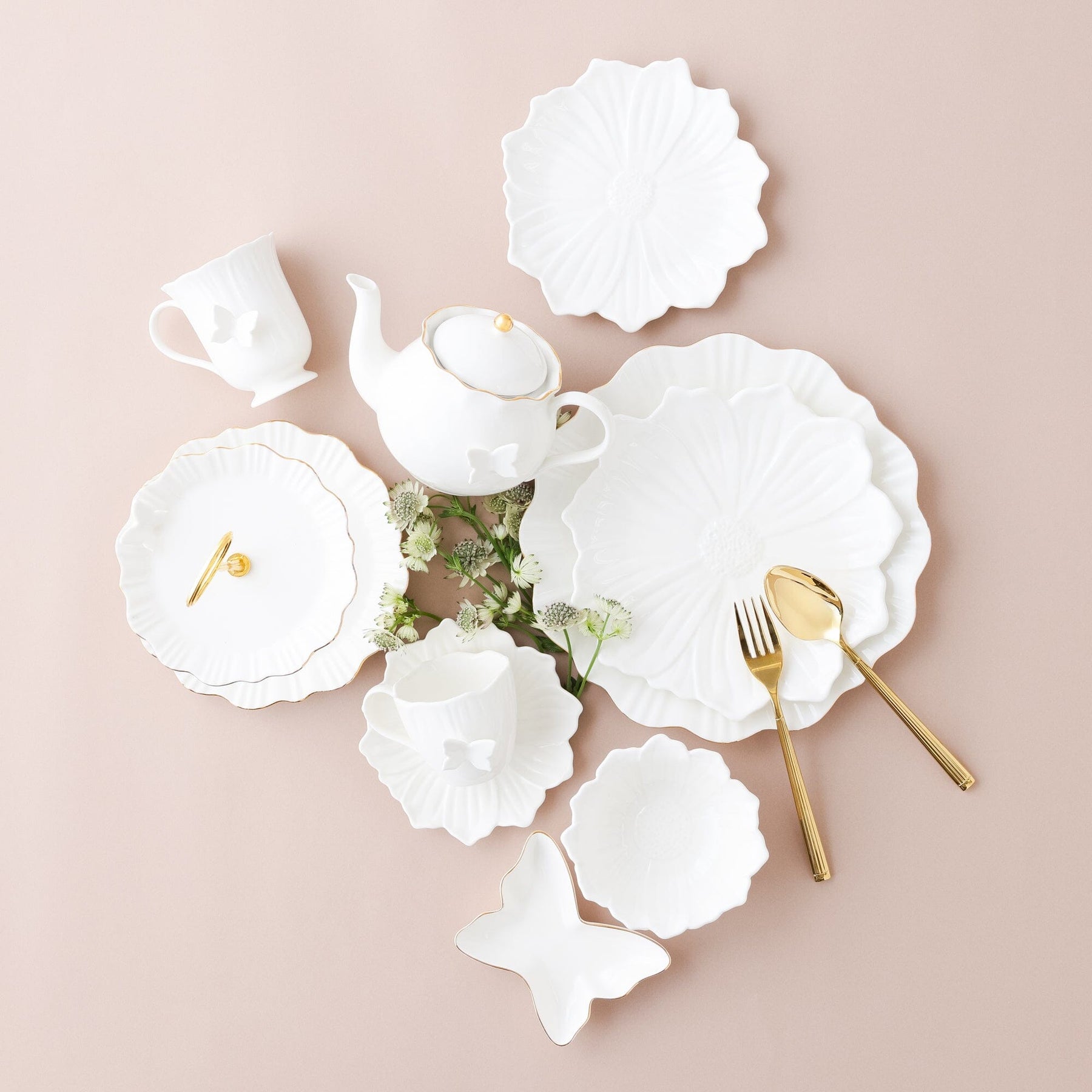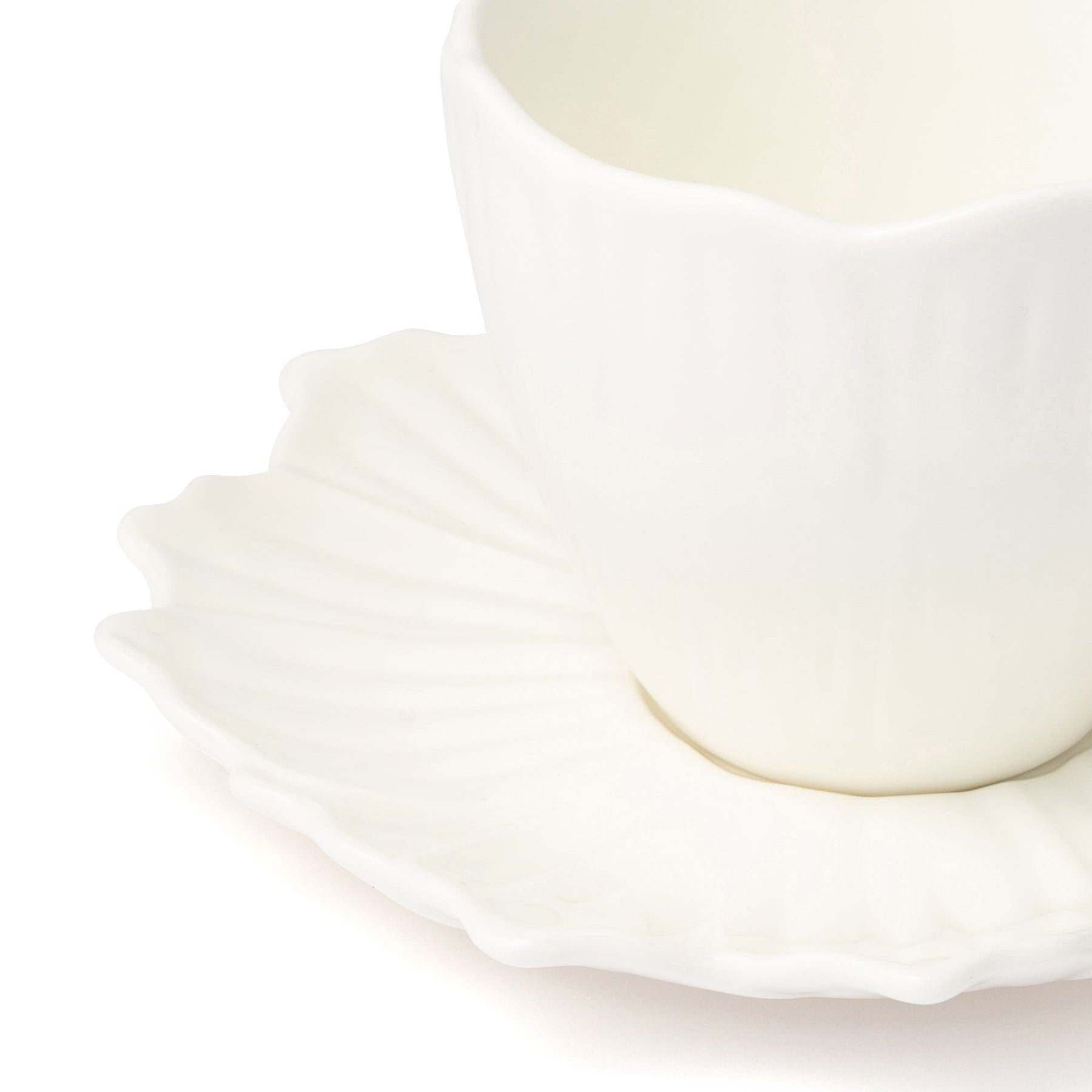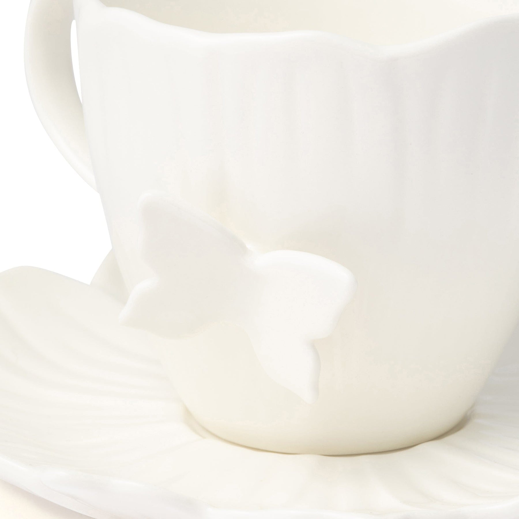 A lovely cup and saucer in the shape of a flower.A butterfly is a unique accent.
