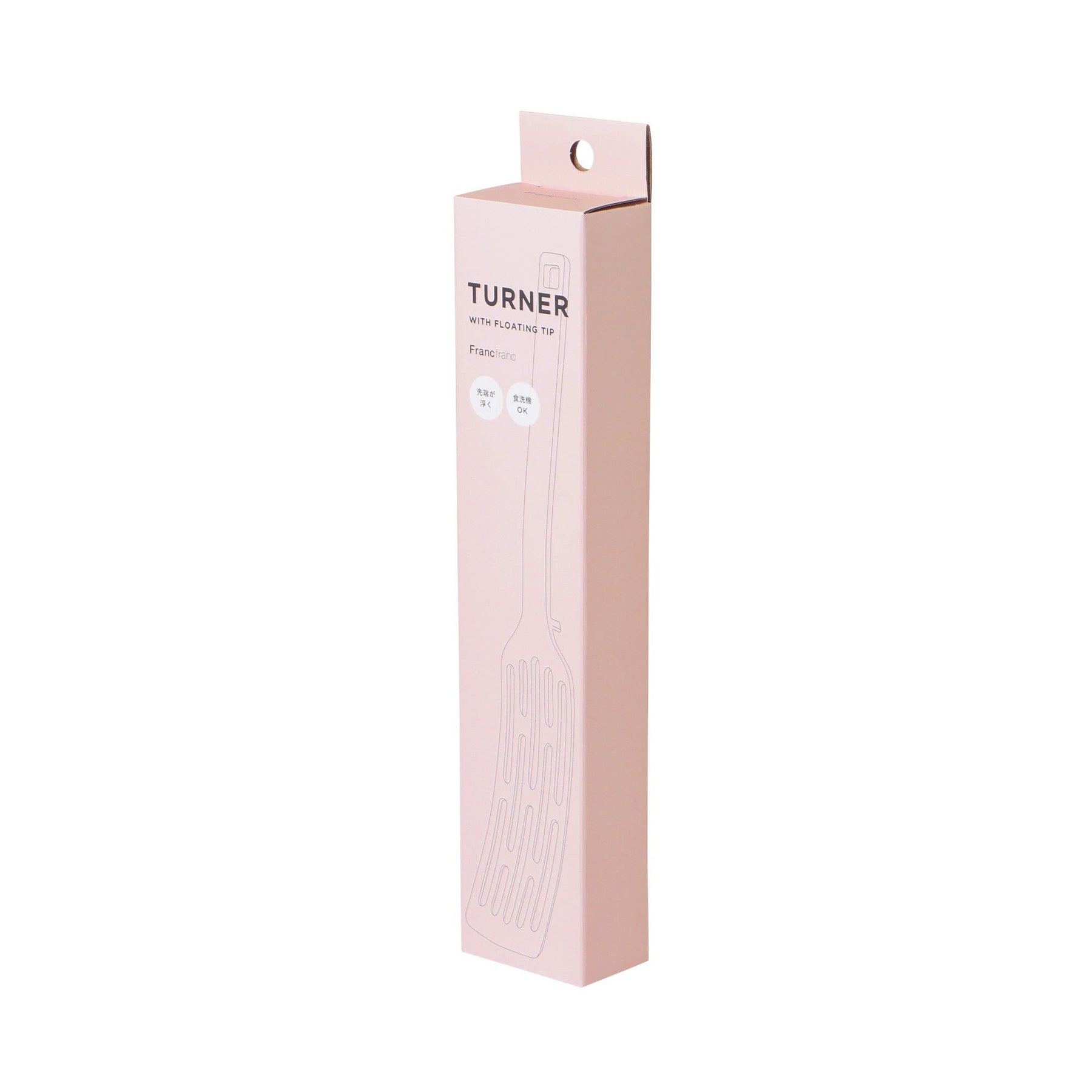 This turner features a floating tip, allowing it to be used without placing directly on the kitchen counter.