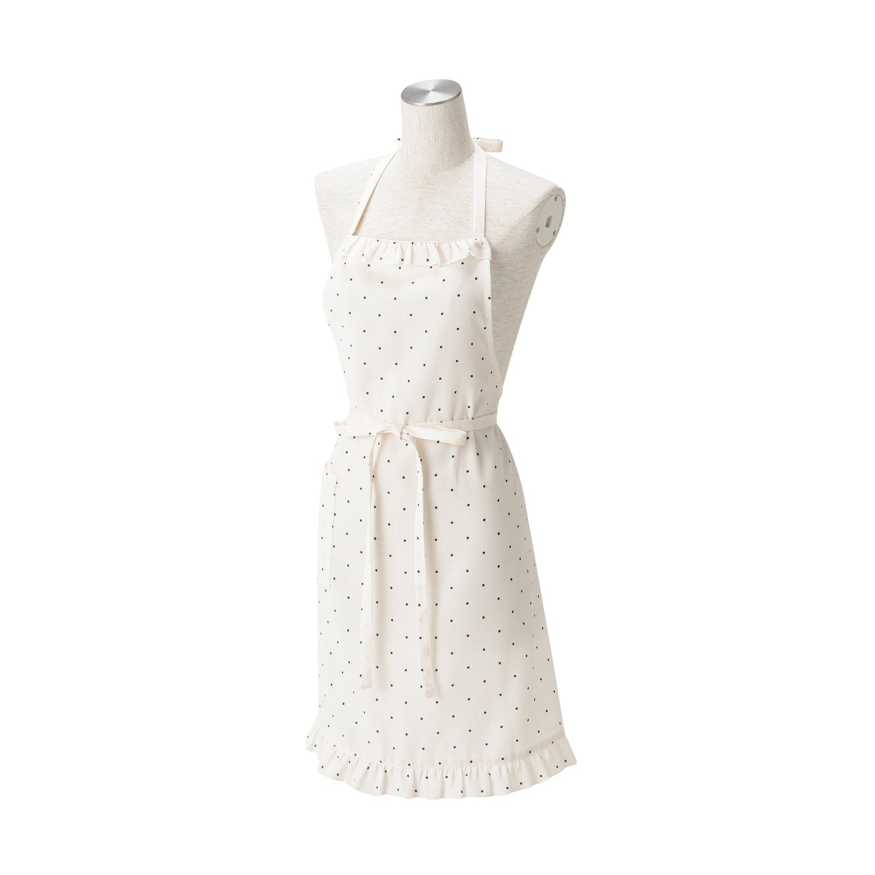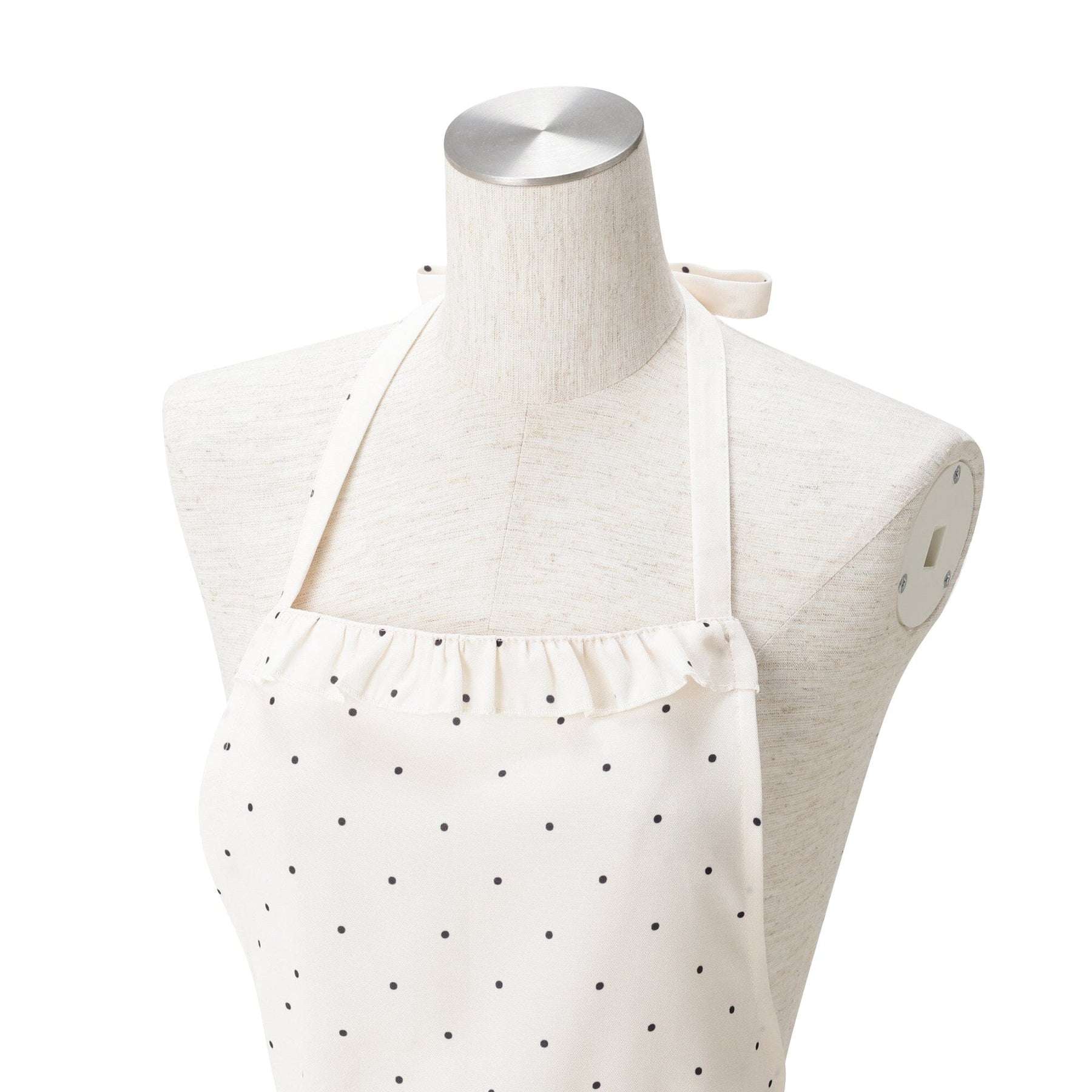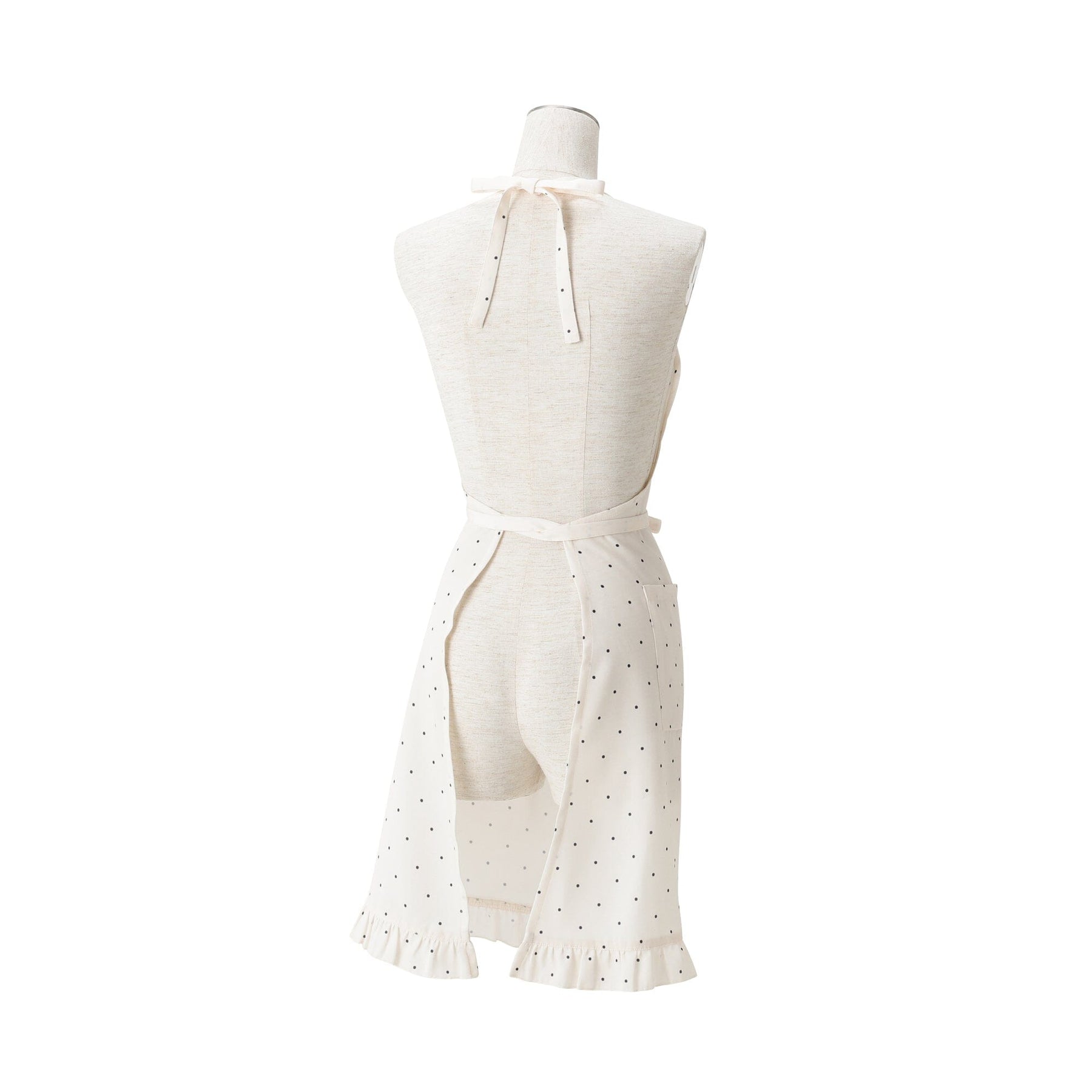 Polka Dot Frill Full Apron Ivory