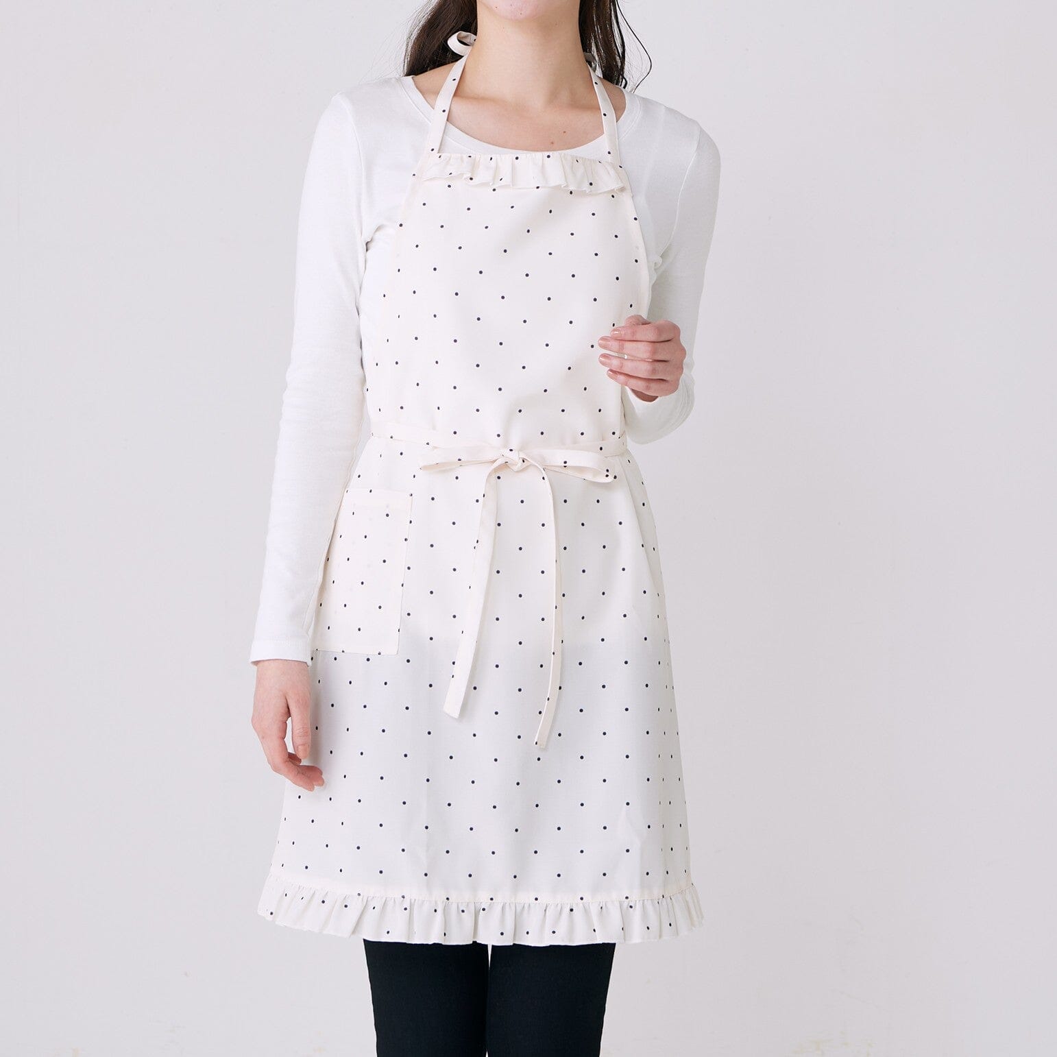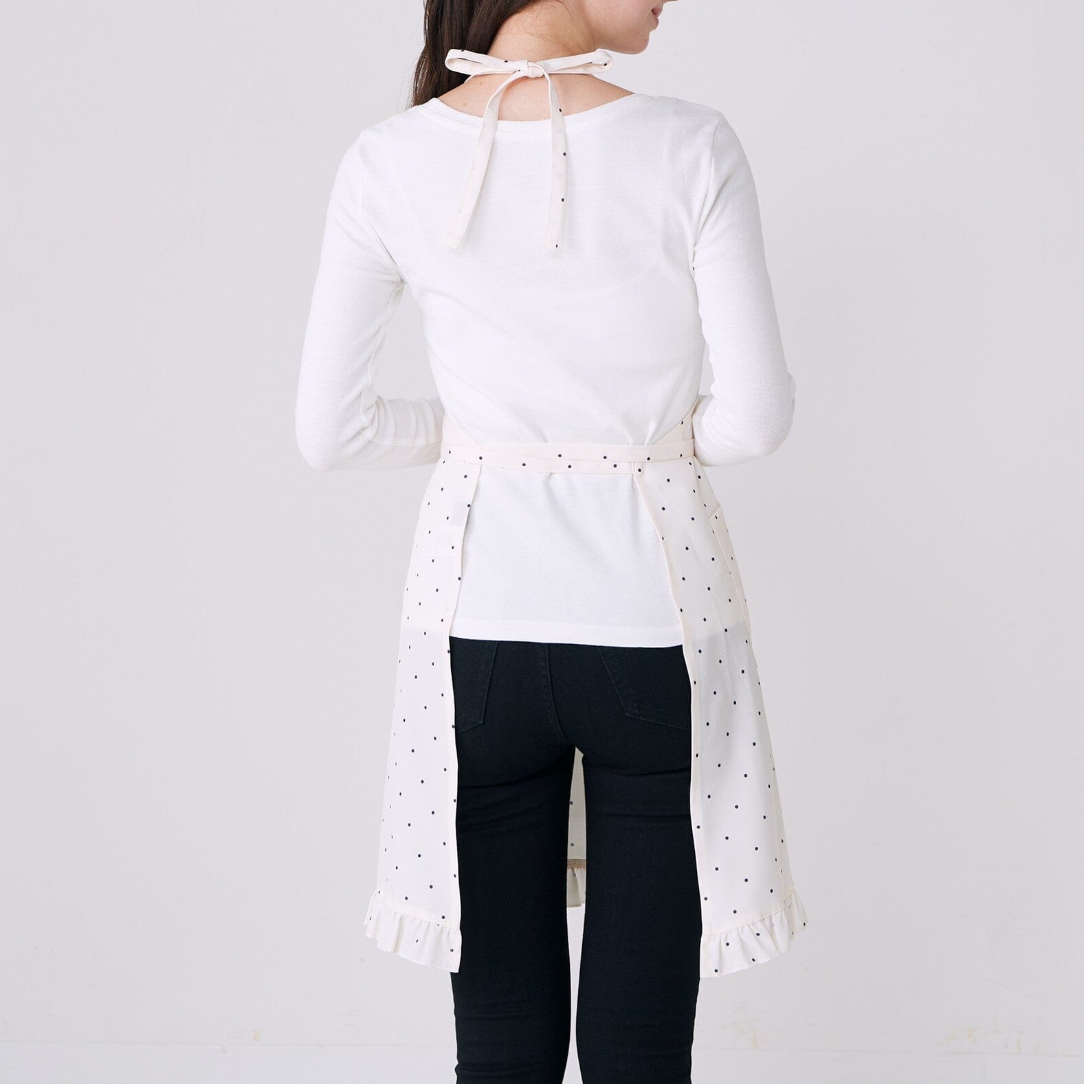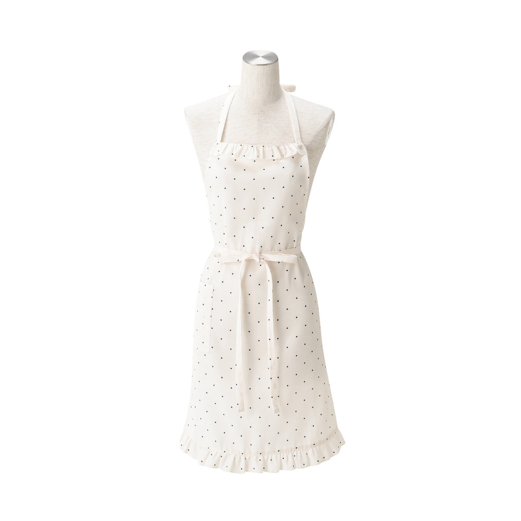 Polka Dot Frill Full Apron Ivory