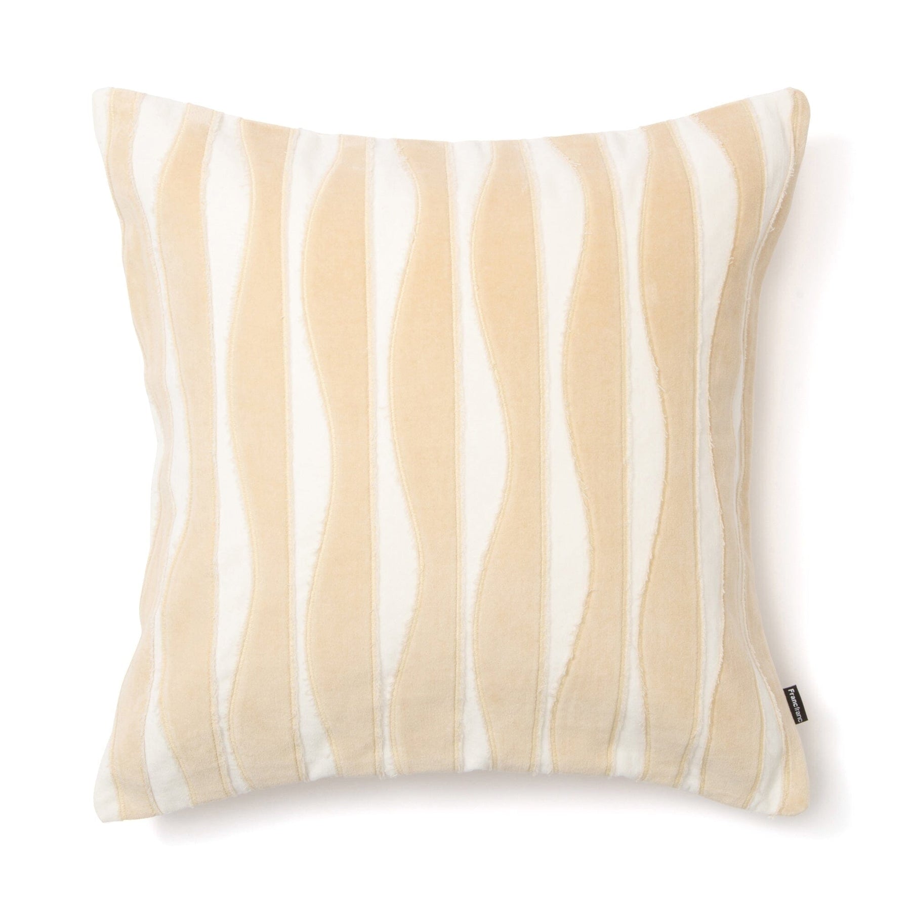 This cushion cover is made of matte velvet fabric and features appliqués of organic shapes.