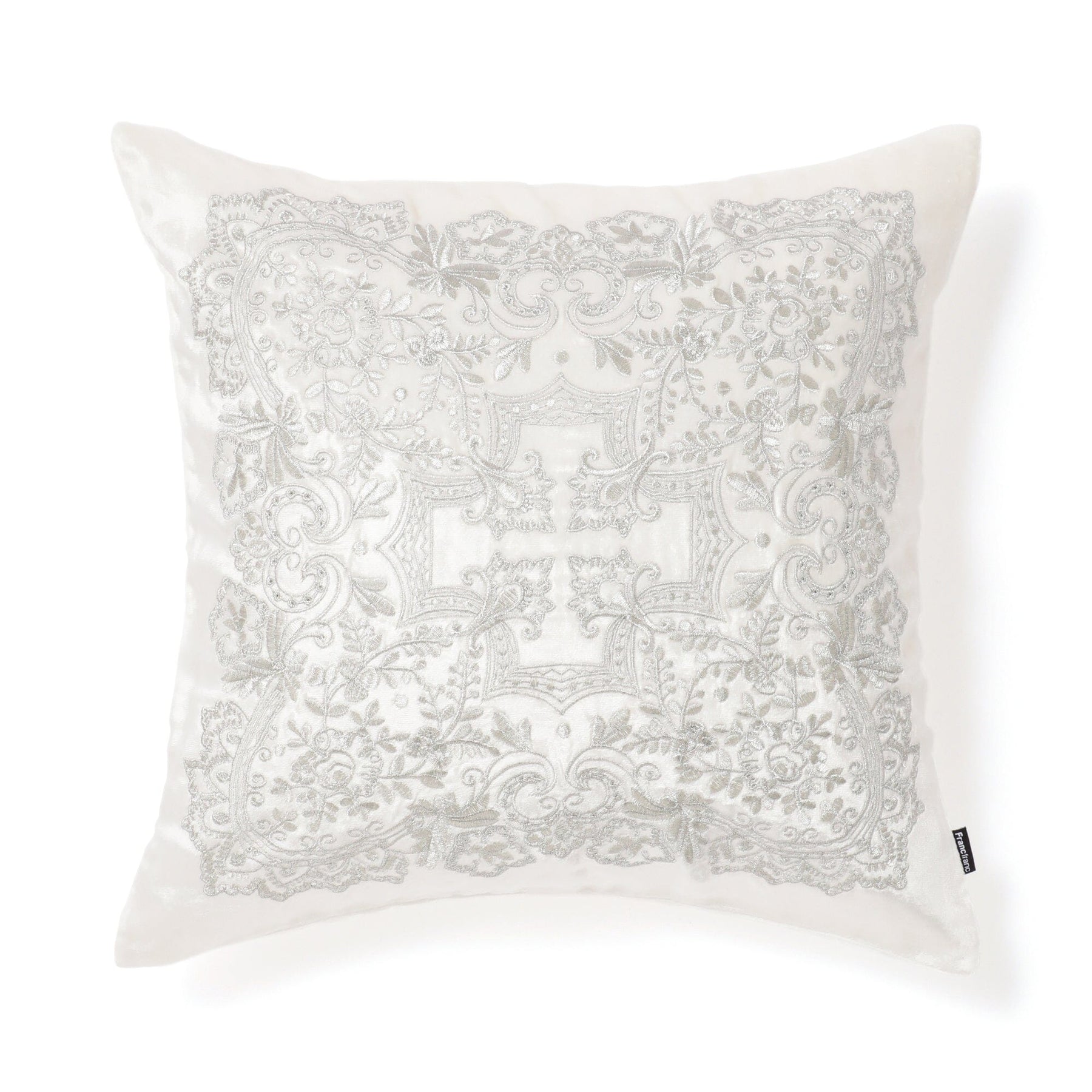 This cushion cover features a glossy velvet fabric with an ornamental pattern in the center.By matching the color of the fabric with the color of the embroidery, it is easy to incorporate into your home despite being fully embroidered, and has a refined finish with just the right amount of presence.
