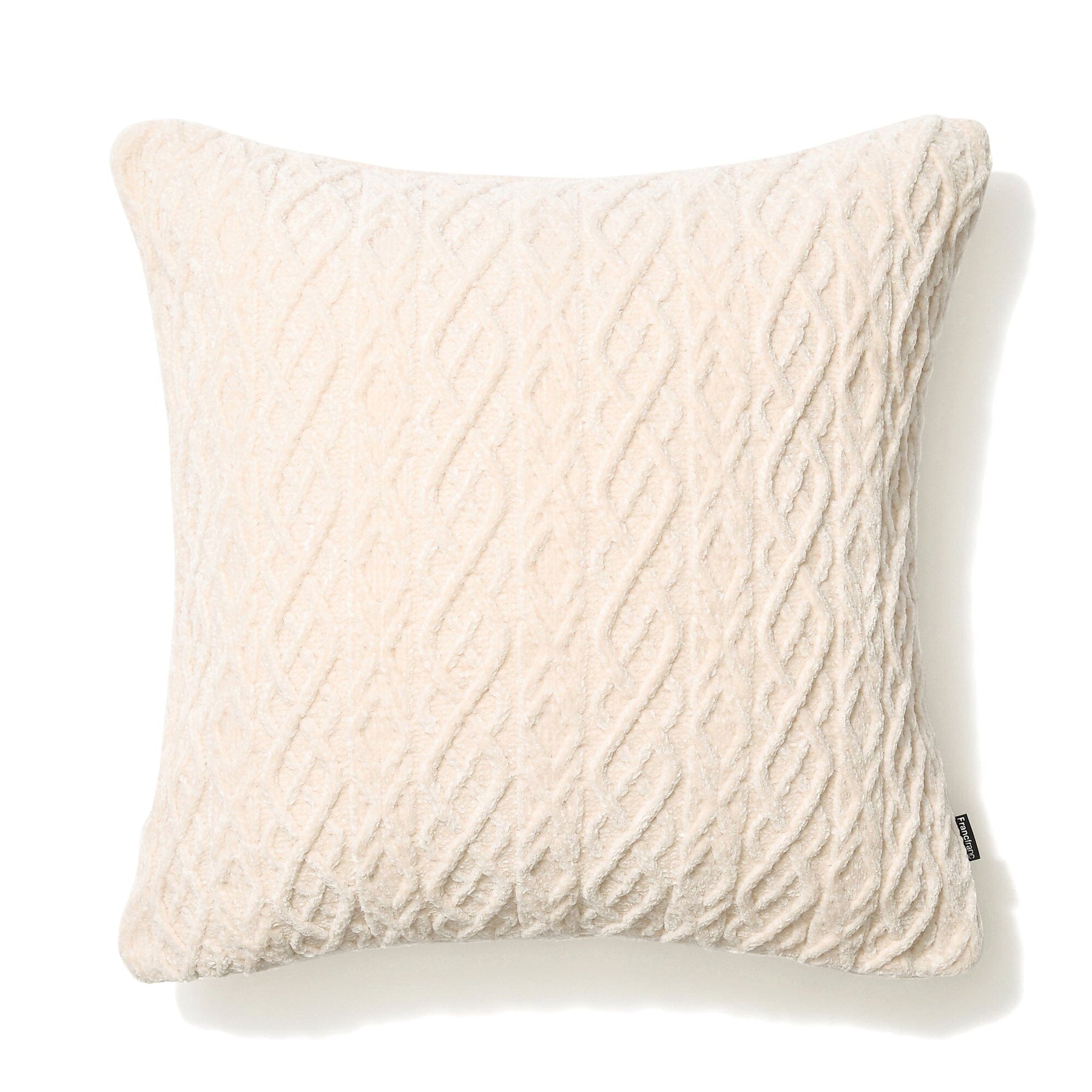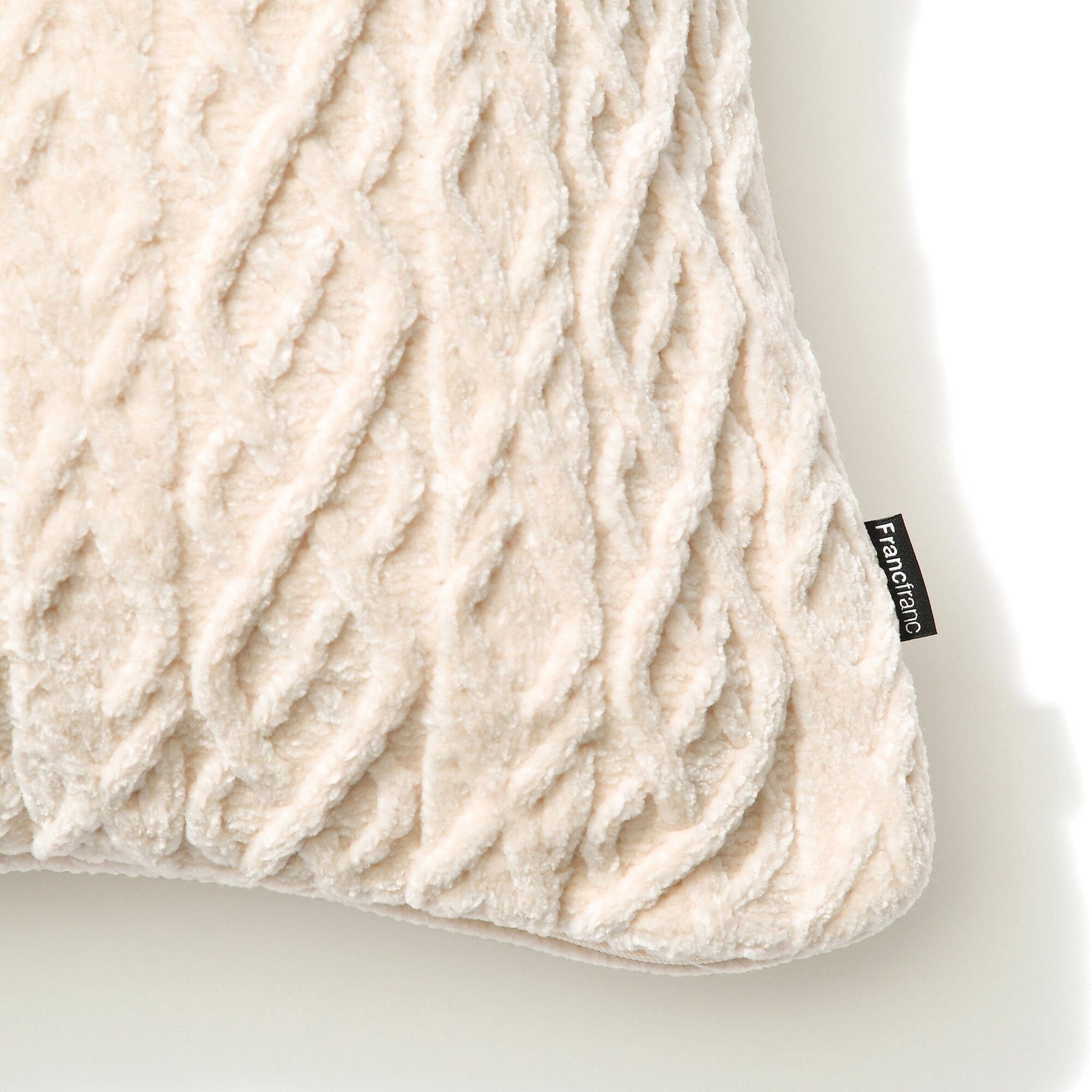 This cushion cover uses chenille yarn to create a three-dimensional cable pattern.