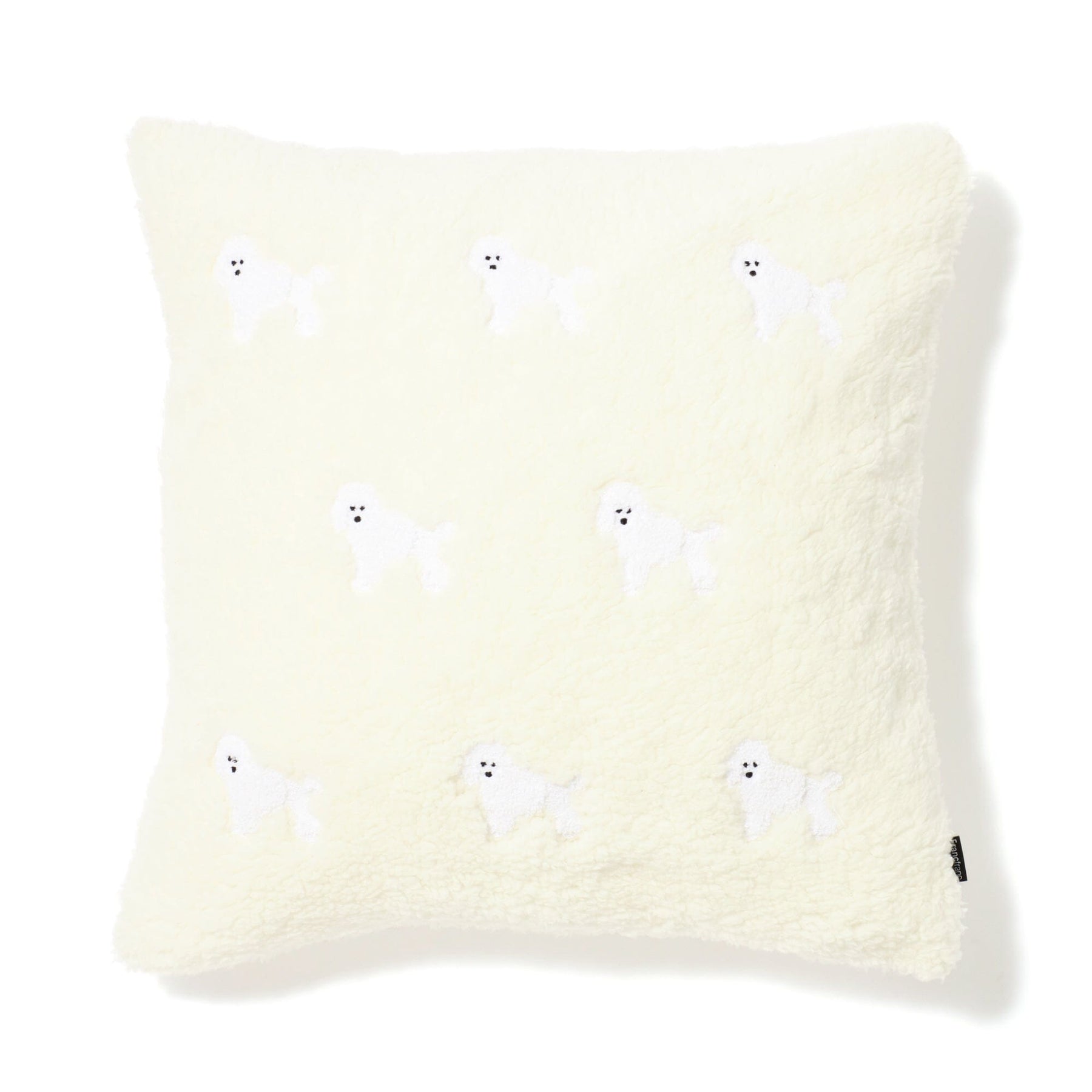 This adorable cushion cover features embroidered dogs.The fluffy fur fabric and dog embroidery create an exquisite, grown-up cute look.