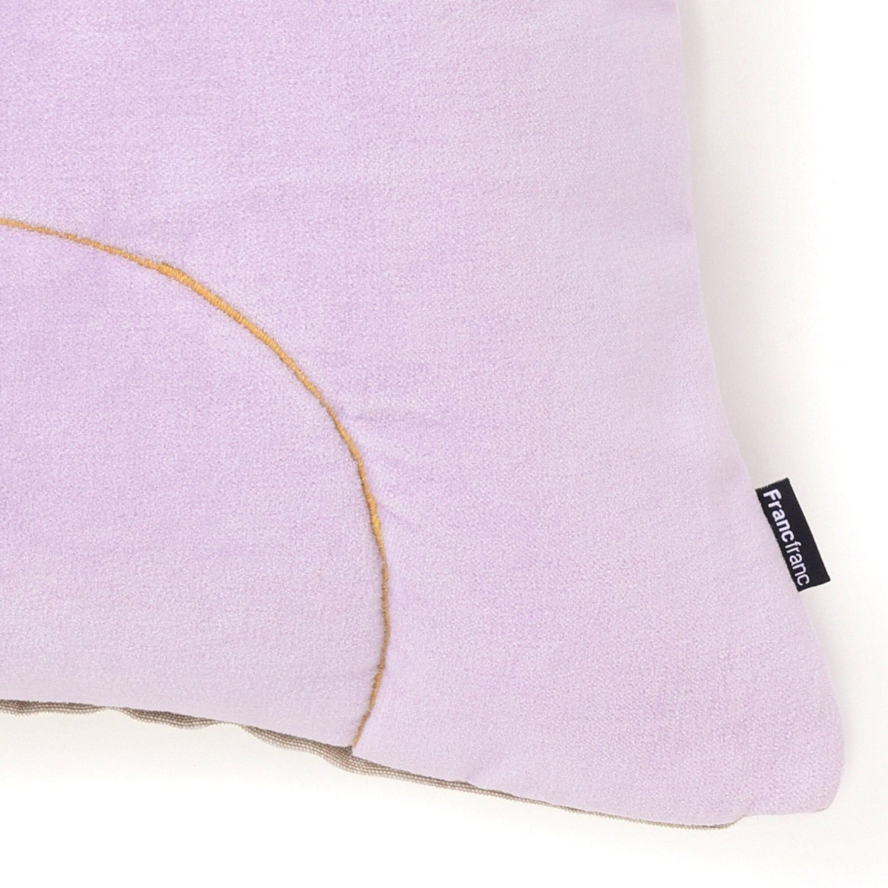 This cushion cover features distinctive embroidered lines.
