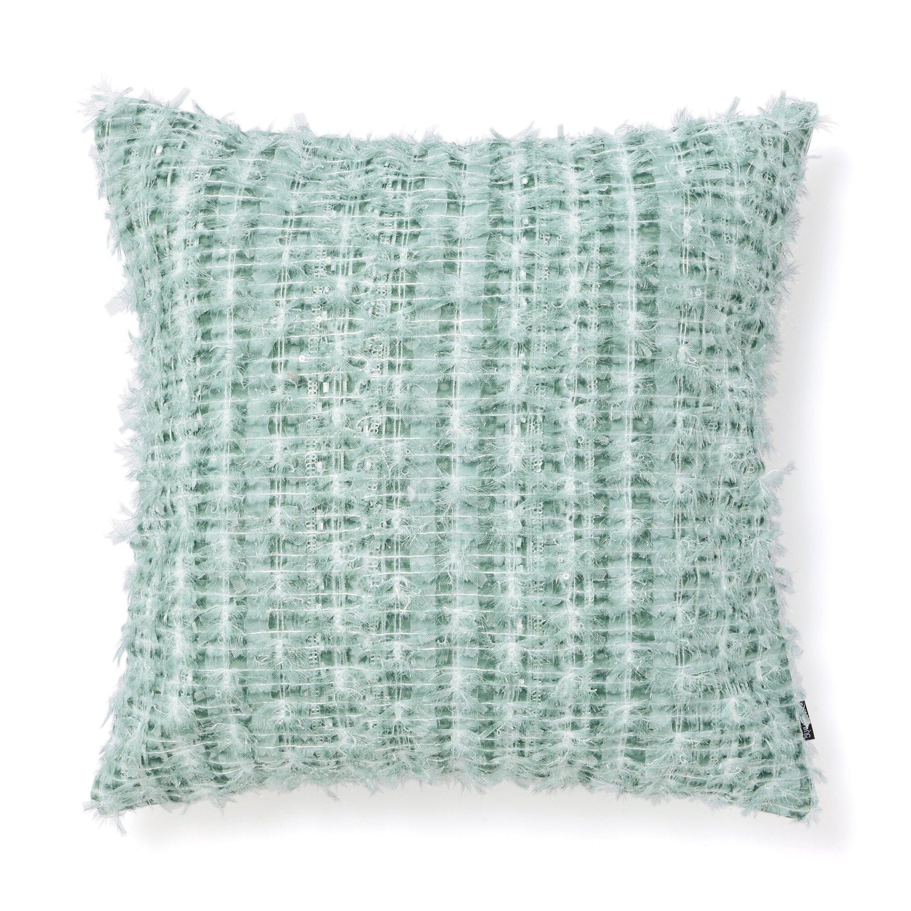 This cushion cover features a textured feel, incorporating delicate tulle fabric.
