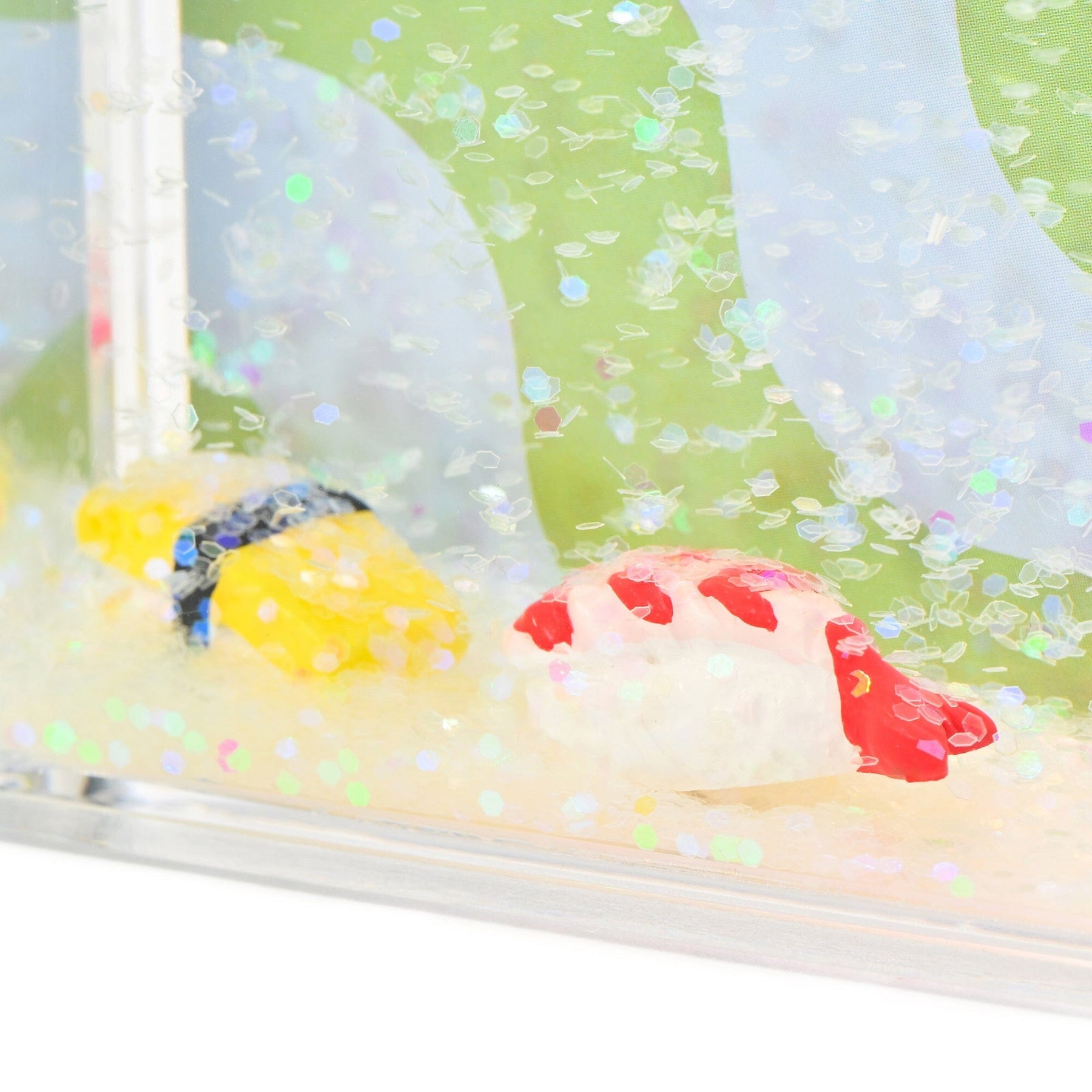 This fun frame features tiny floating sushi pieces and can also be used as an object.The pop background pattern makes it perfect for displaying instant photos, trading cards, stickers, and more.