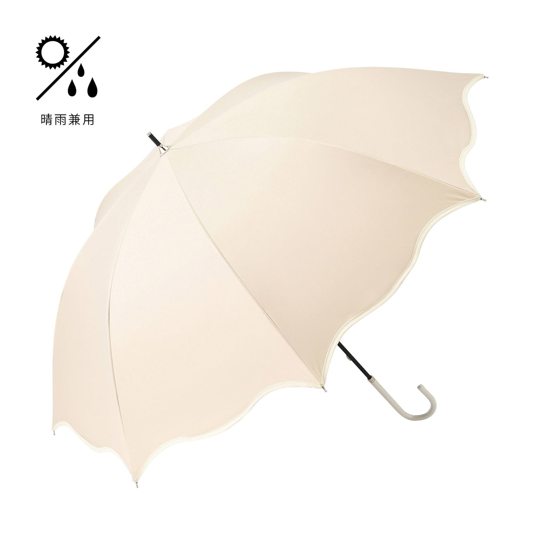A long umbrella with a wavy hem and a trendy design that can be used in both sunny and rainy weather.