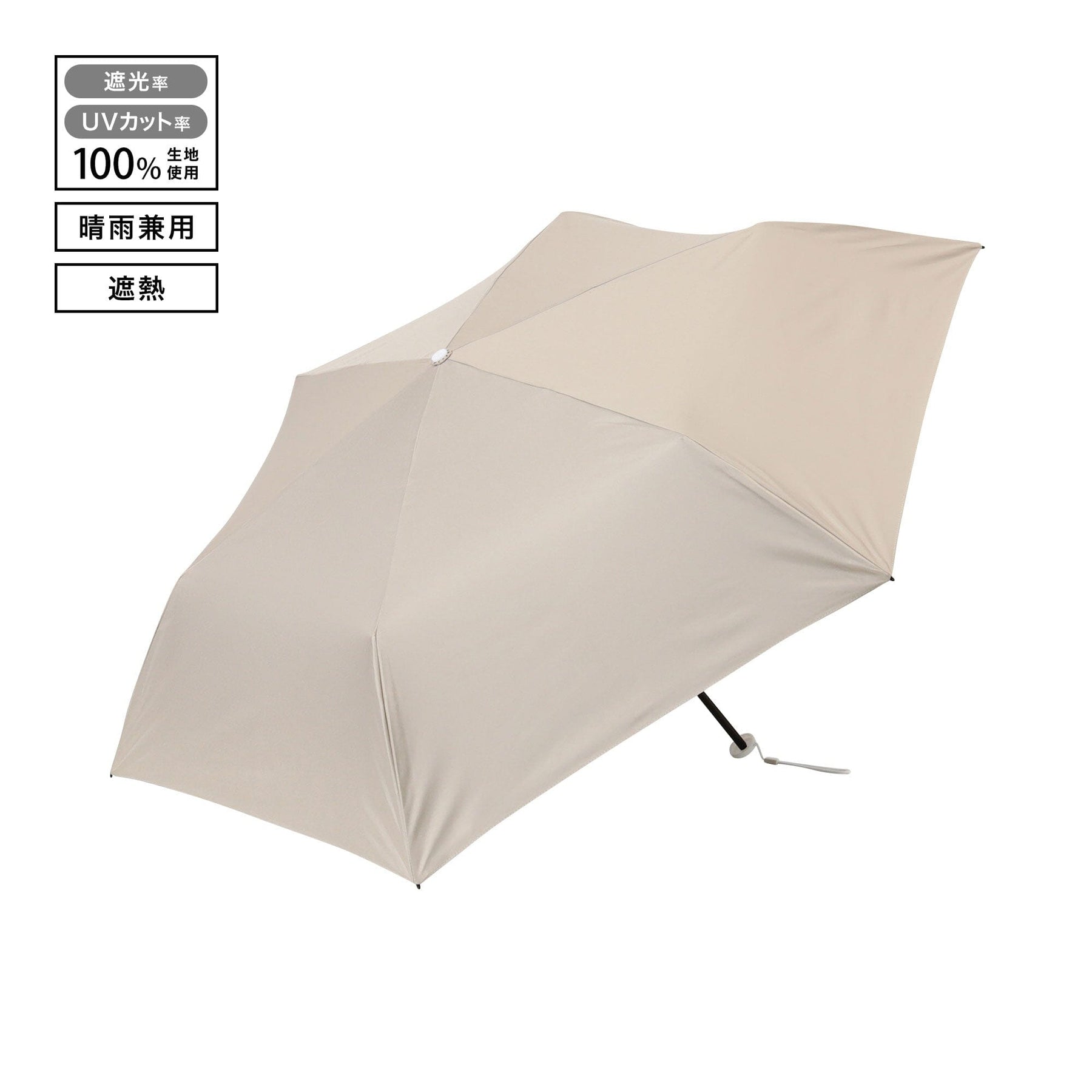 This folding umbrella uses a special fabric with a heat shielding rate of 55% or more, providing excellent protection from the hot sun.