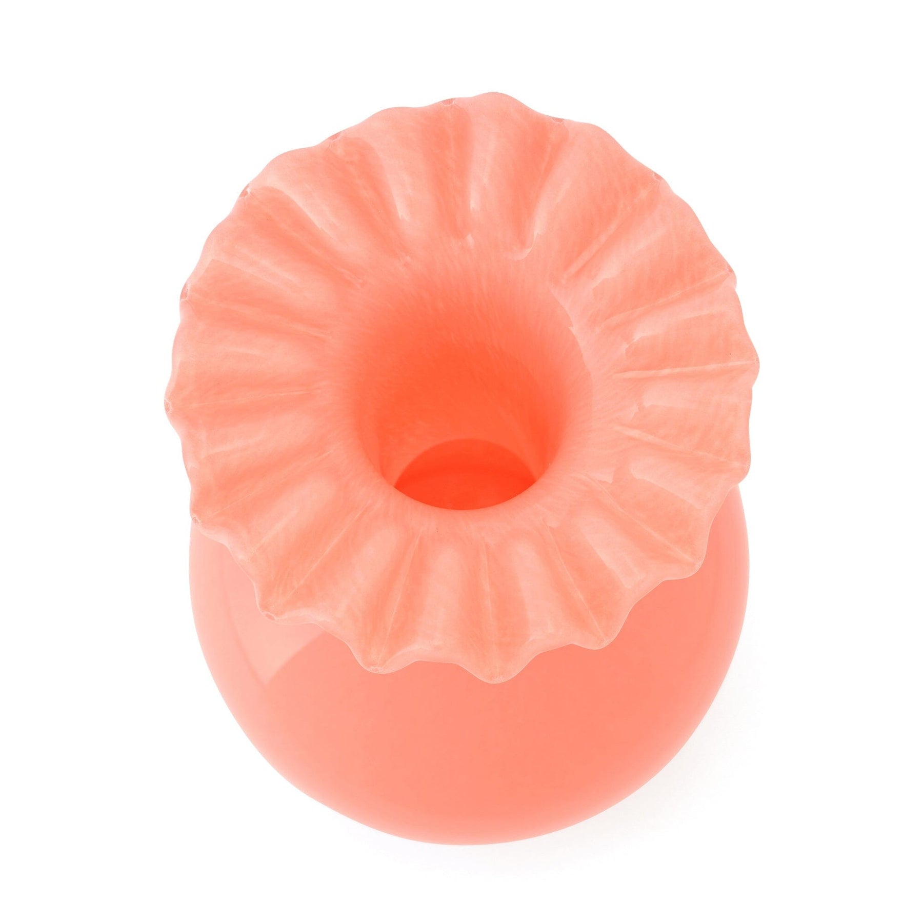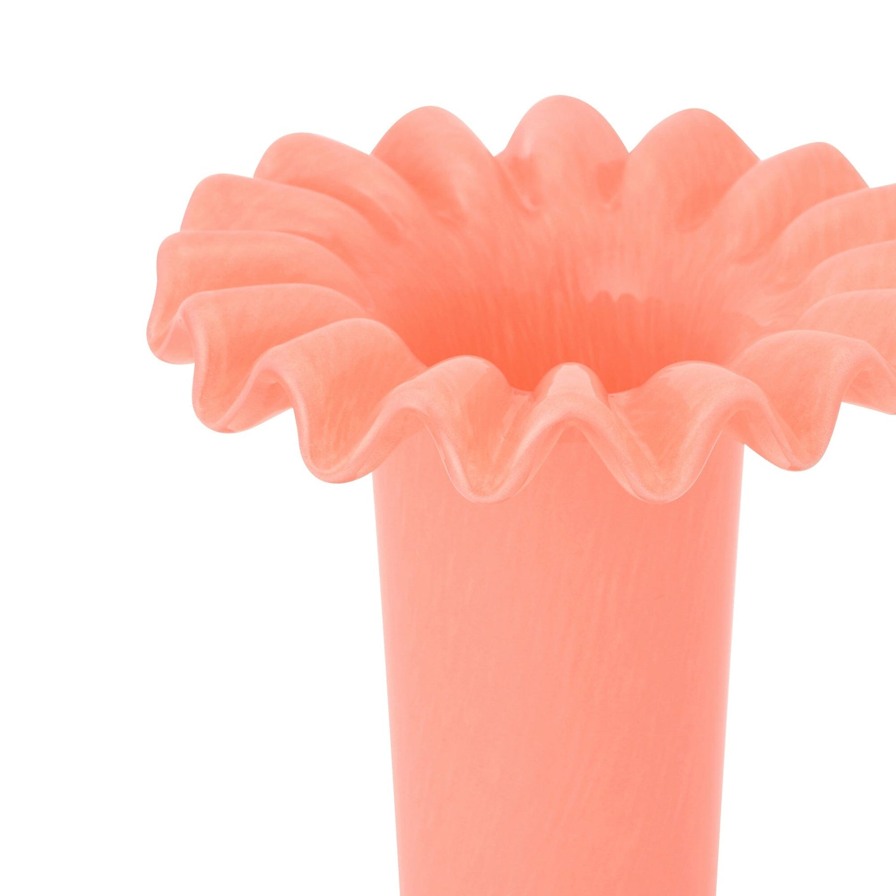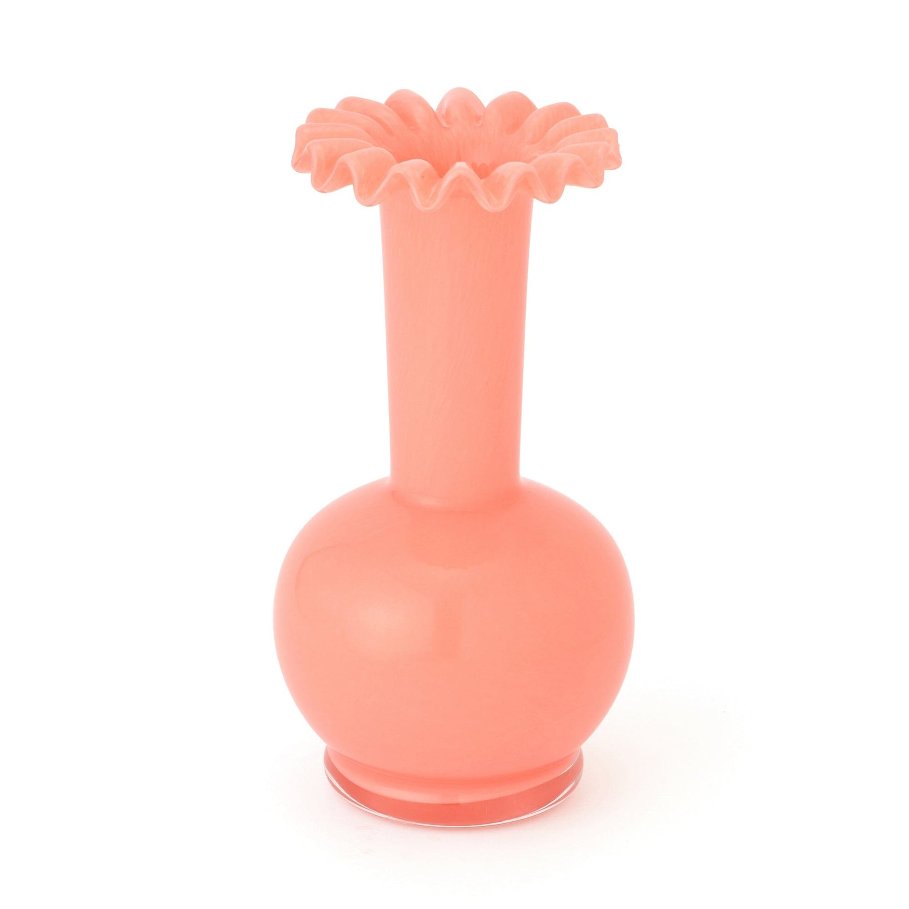 This glass flower vase features cute ruffles.The vibrant color will add a wonderful accent to your interior.
