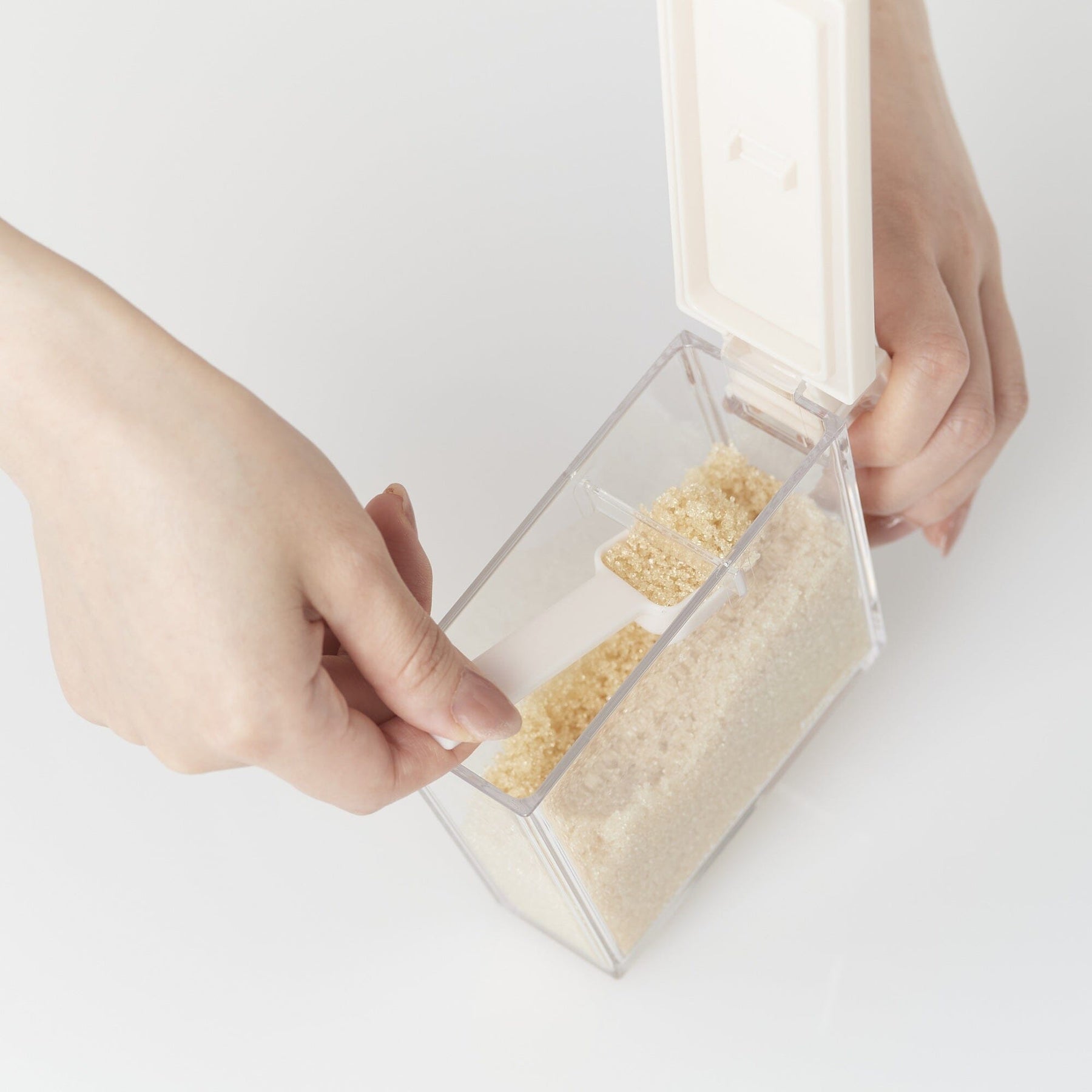 The inside of the container has a dedicated spoon and leveling plate. It makes measuring easy, and the included spoon can be stored so you don't have to worry about losing it.