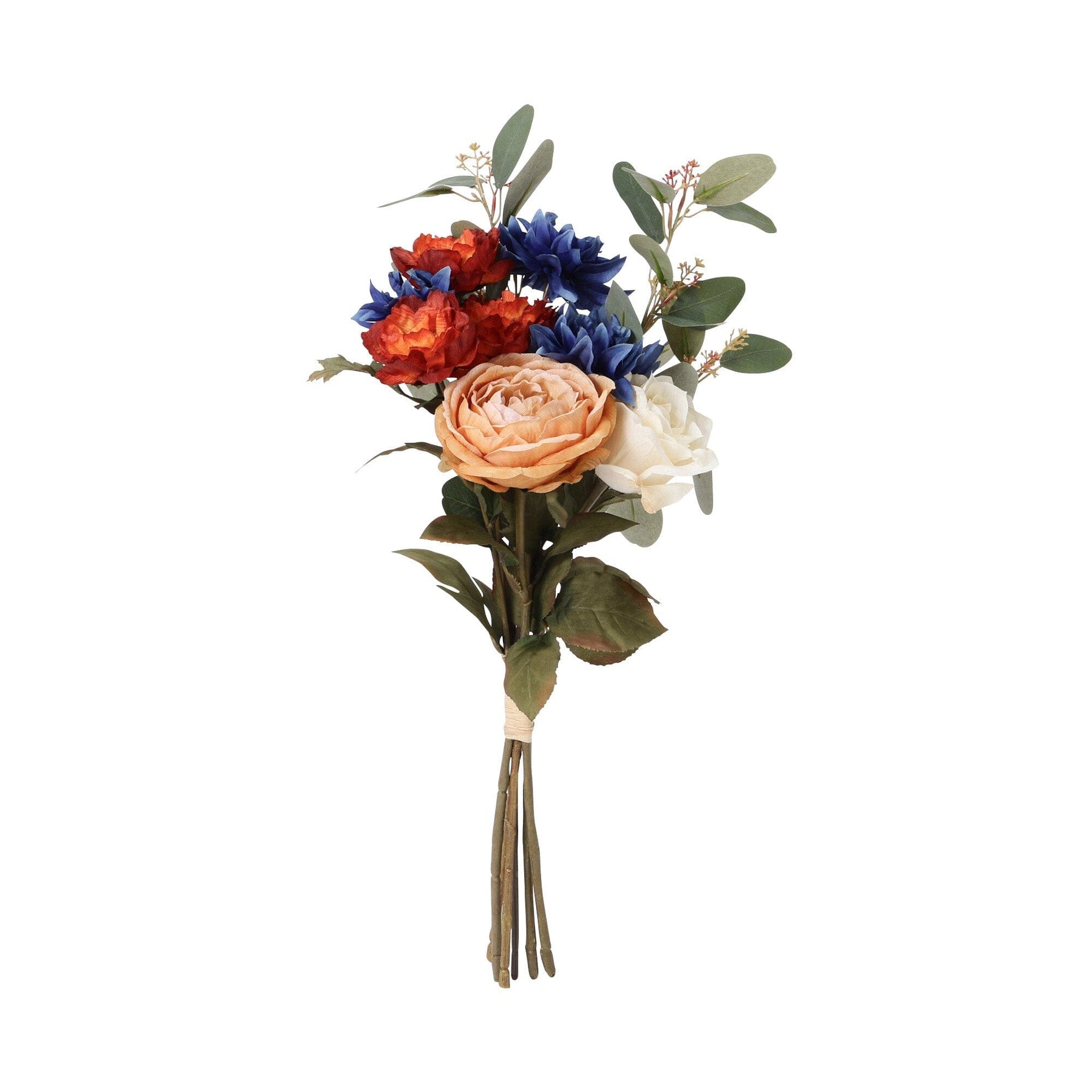 This bouquet features a gorgeous combination of red and blue artificial flowers.