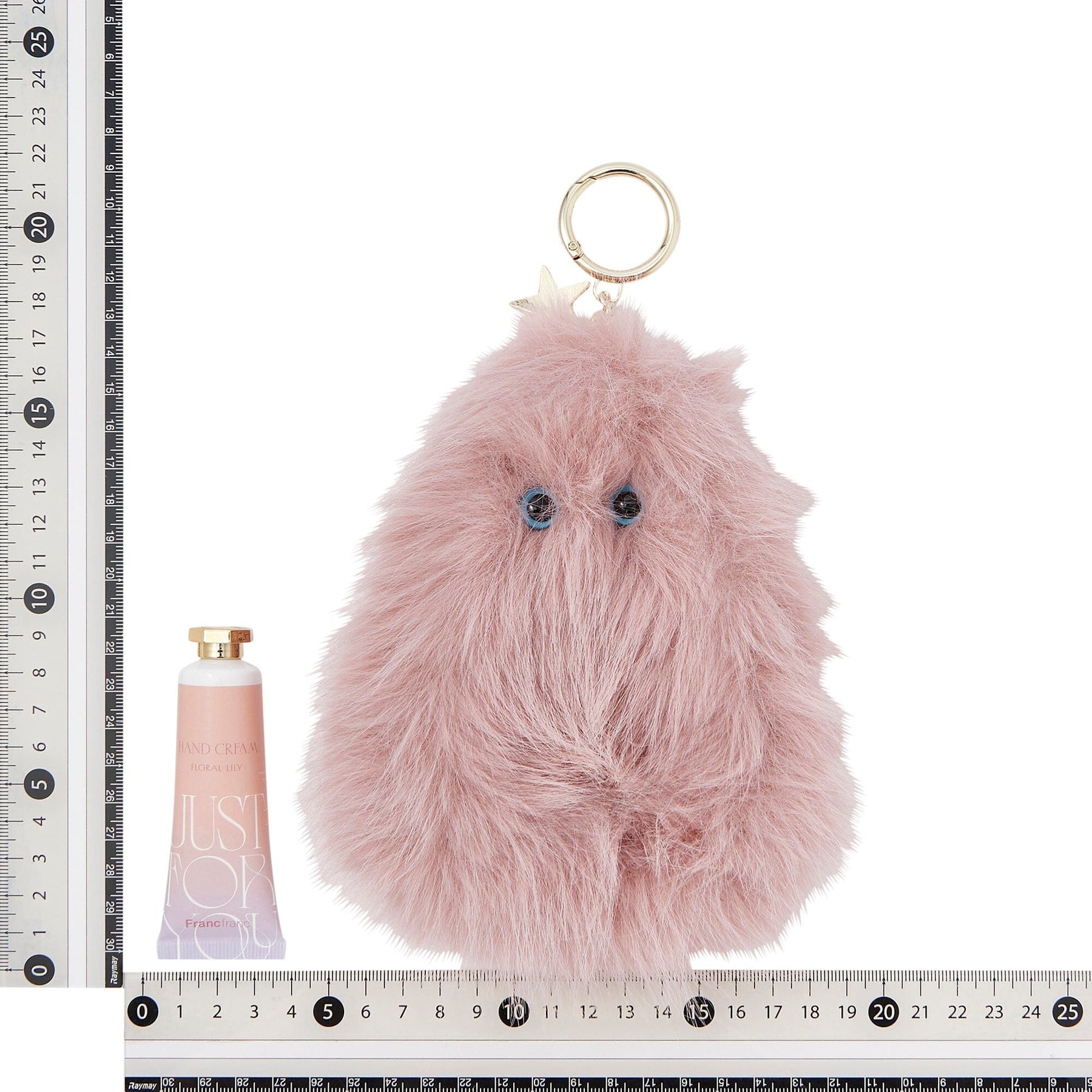 A gift set that includes a fluffy, long-haired character charm and hand cream.
