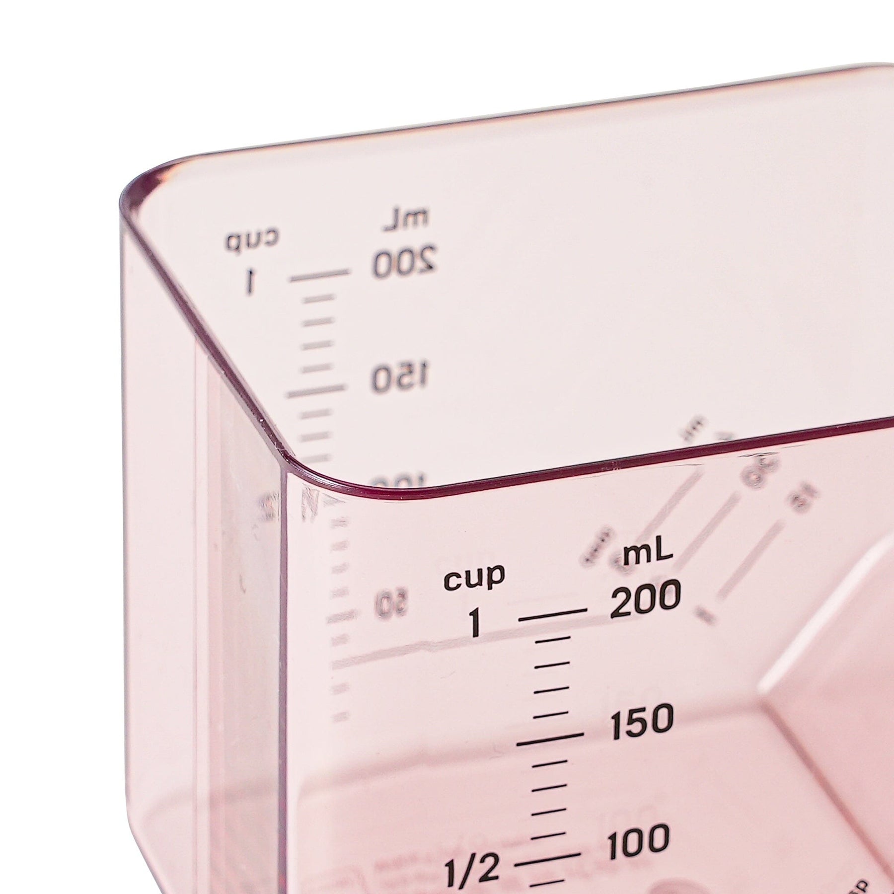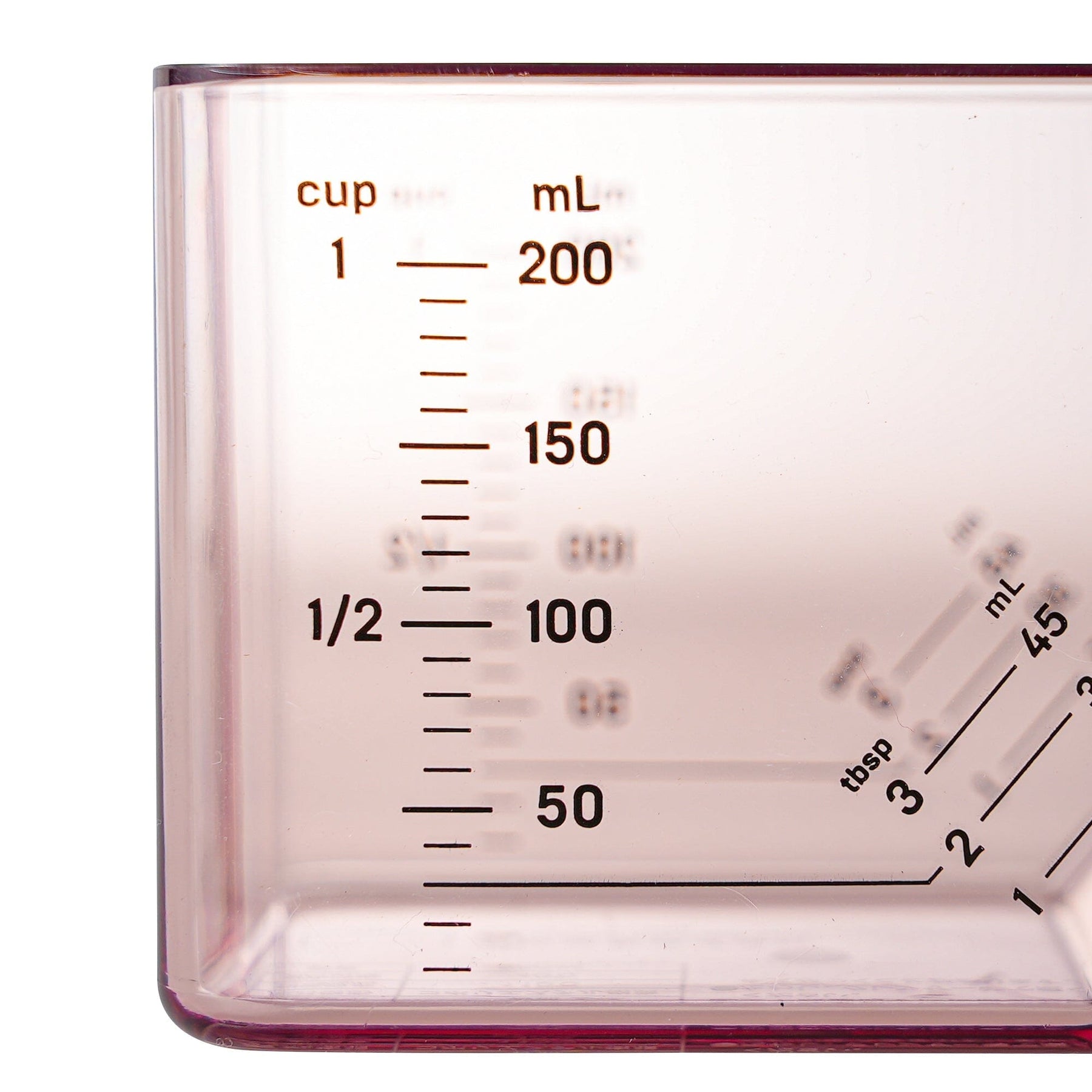 This 2-way measuring cup measures 1 cup when placed flat and 1 tablespoon when tilted.When placed flat, it measures up to 200ml in 10ml increments, 1/2 cup, and 1 cup.