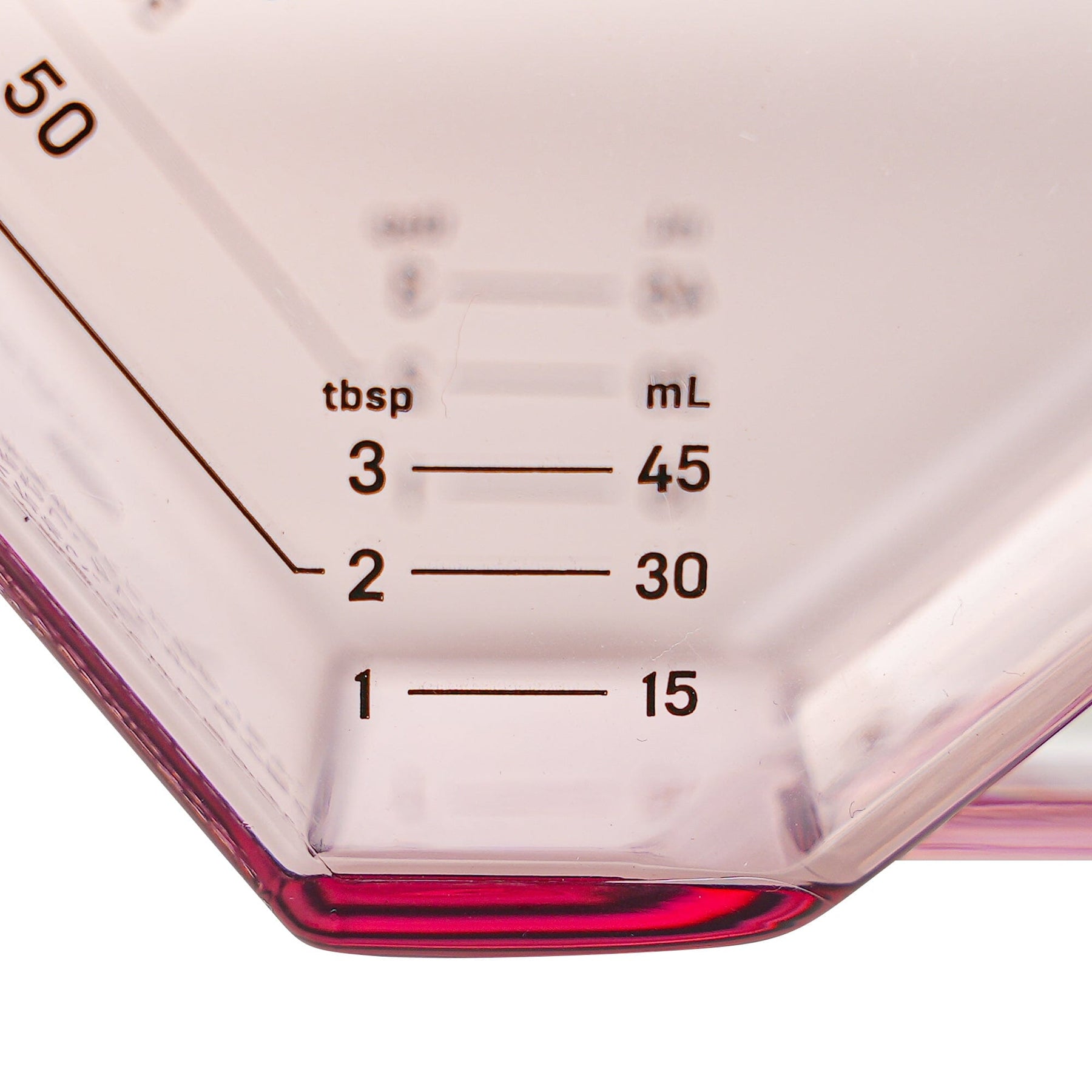When placed at an angle, it measures up to 45ml in 15ml increments, up to 3 tablespoons.