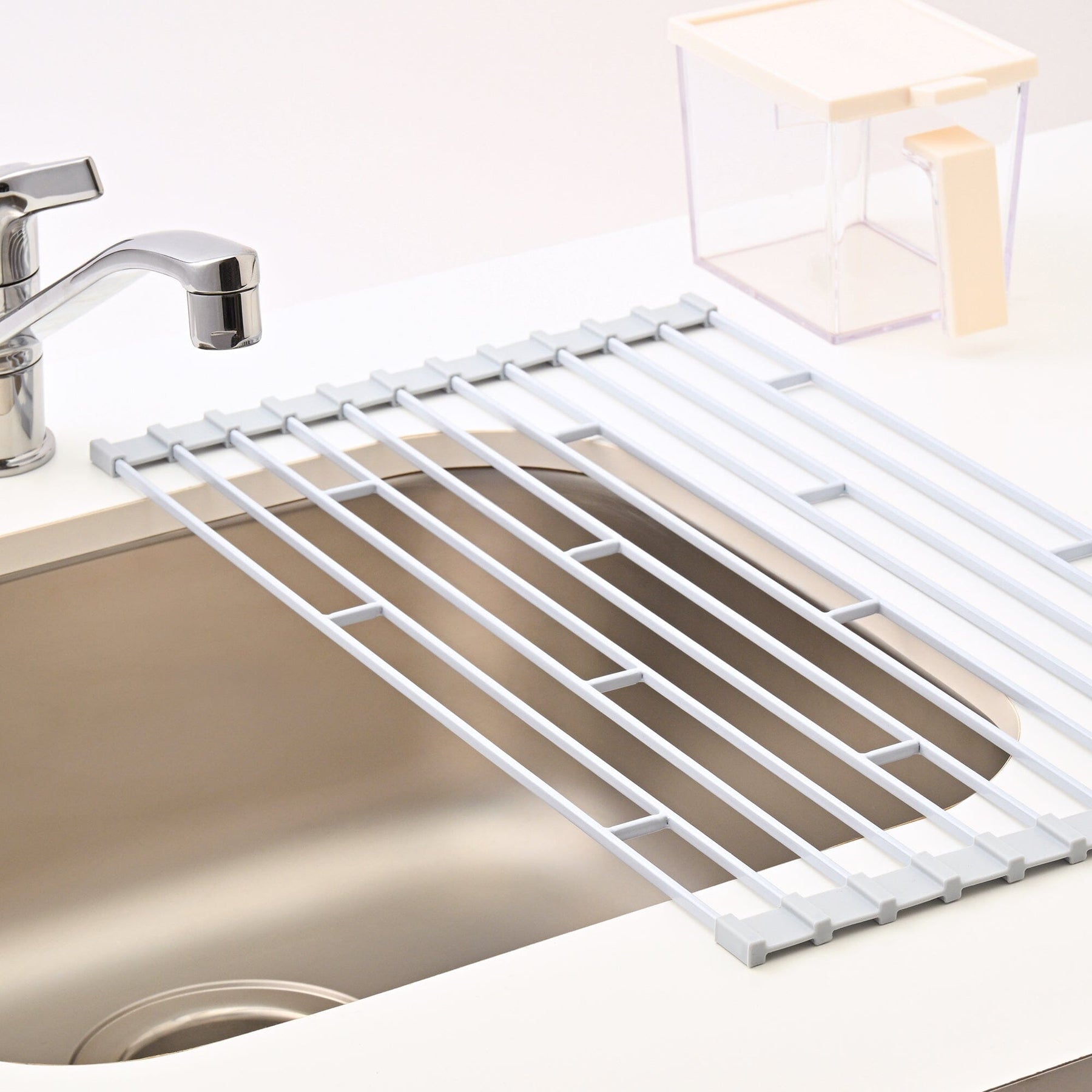 It can be rolled or folded to fit your sink space, and its width can be adjusted.