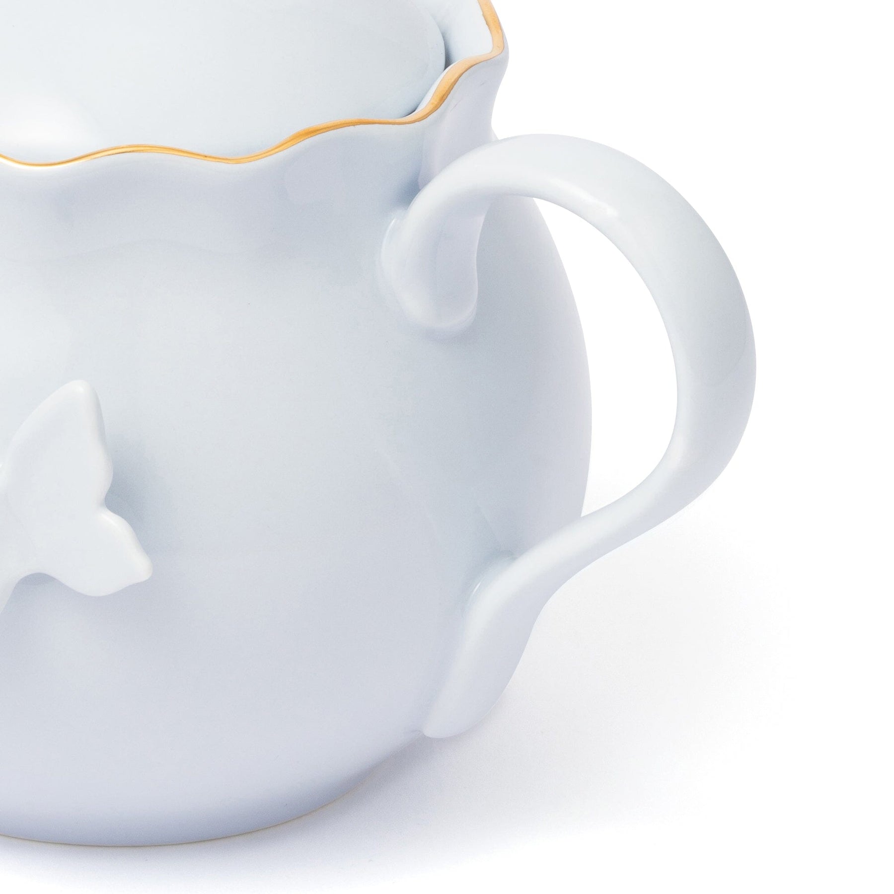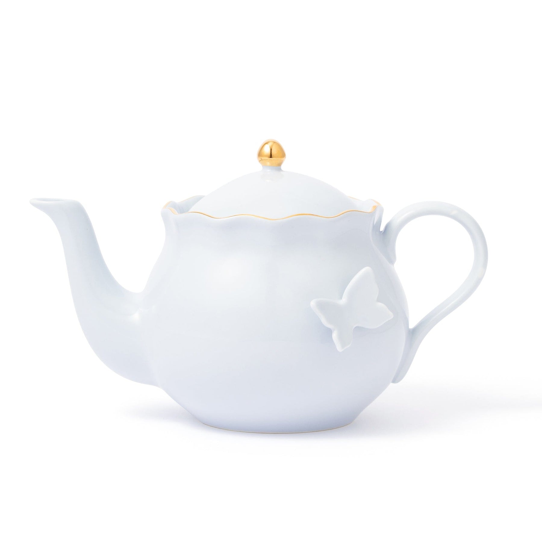 This teapot features petal-like scallops.