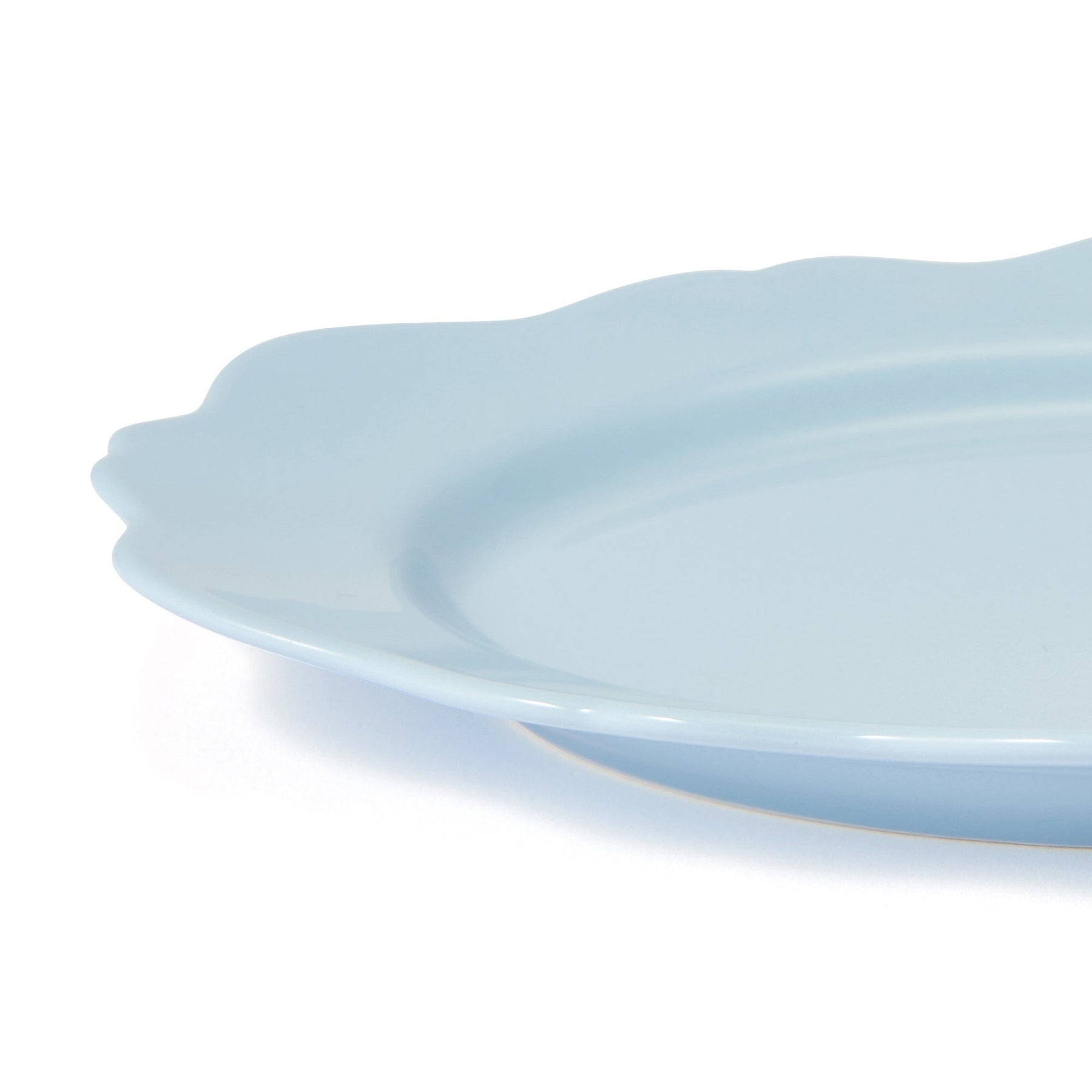 This elegant oval plate features a soft, scalloped shape that catches the eye.The gently wavy edges subtly enhance the food and add a gentle touch to your dining table.