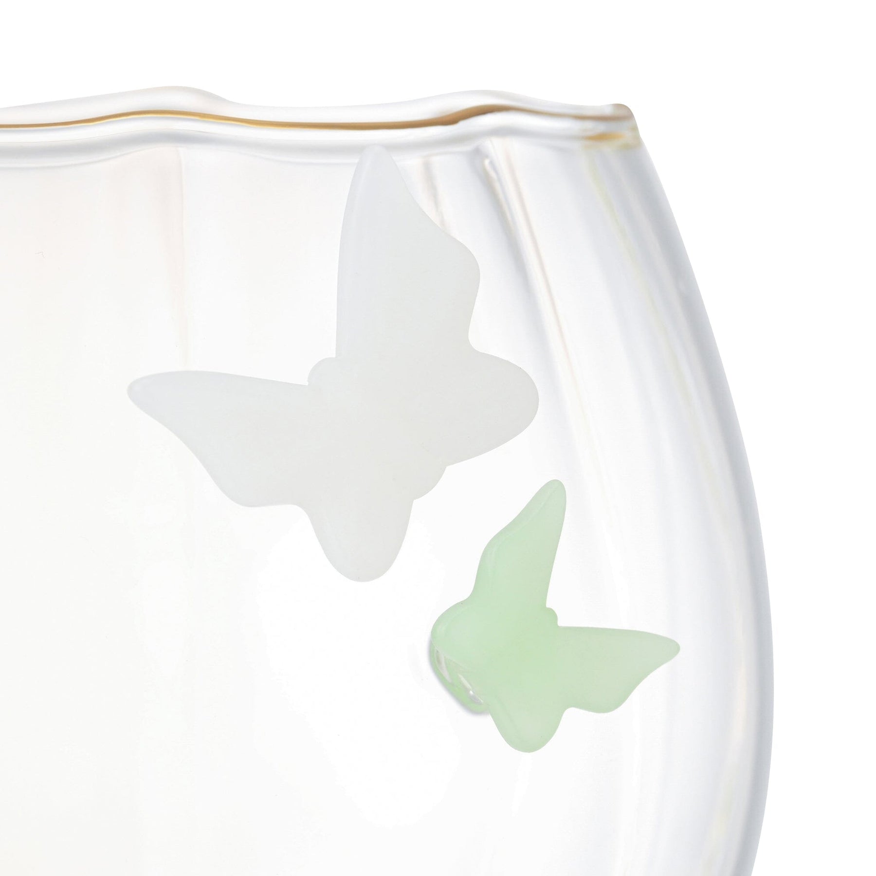 This tumbler is designed to resemble a butterfly perched on a flower-inspired glass.