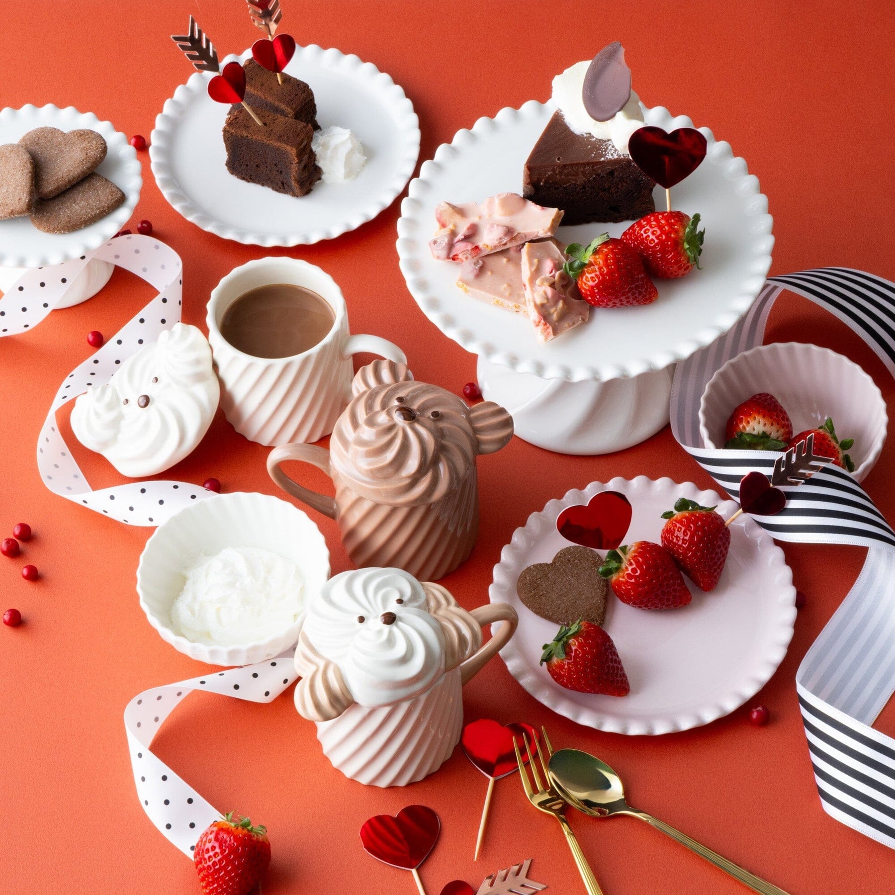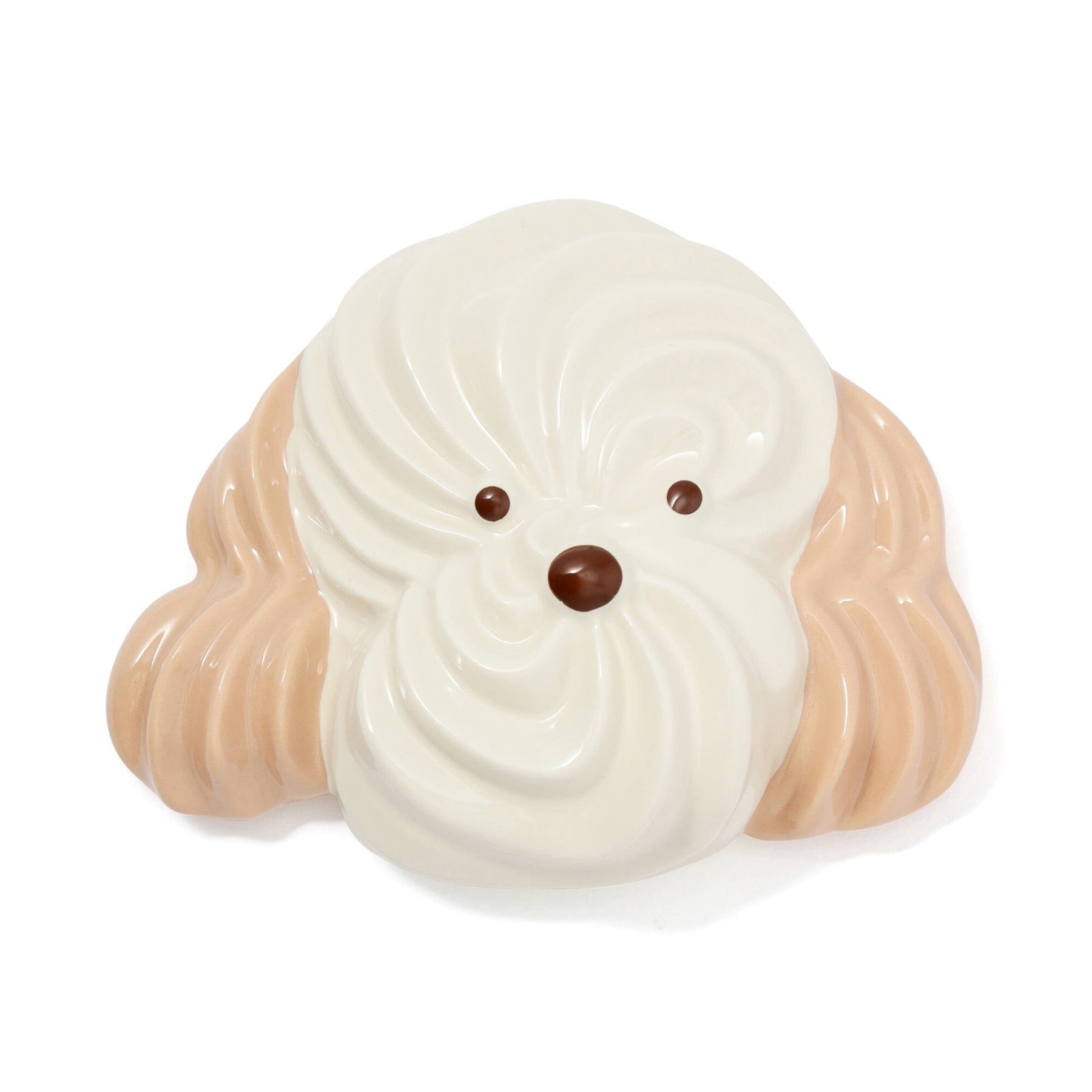 The white dog is inspired by milk, the floppy-eared dog by caramel, and the bear by chocolate.
