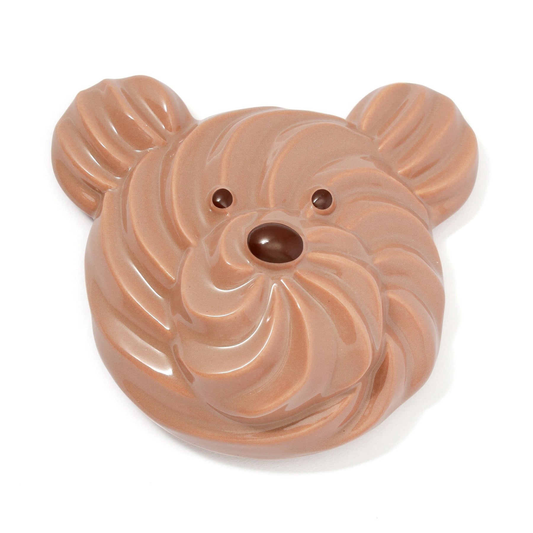 The white dog is inspired by milk, the floppy-eared dog by caramel, and the bear by chocolate.