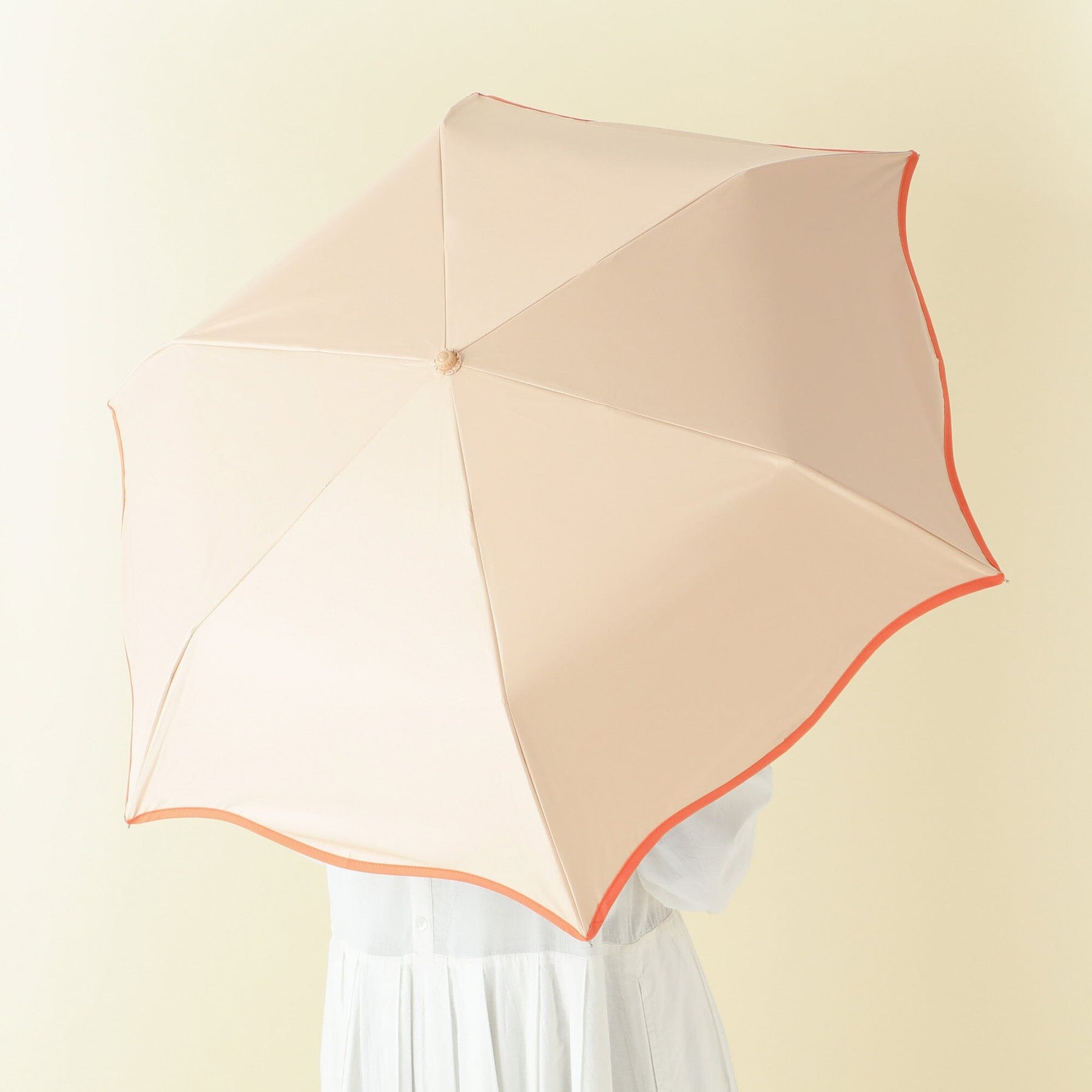 A folding umbrella with a trendy design that features a wavy hem.The fabric has a 100% light blocking rate, and the back is black, so you can stay comfortable even on sunny summer days without being dazzled.
