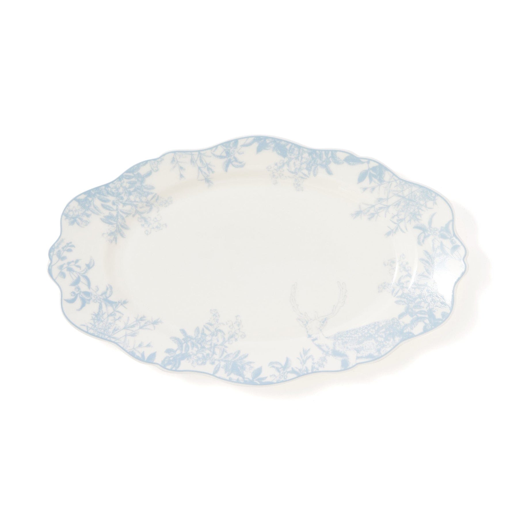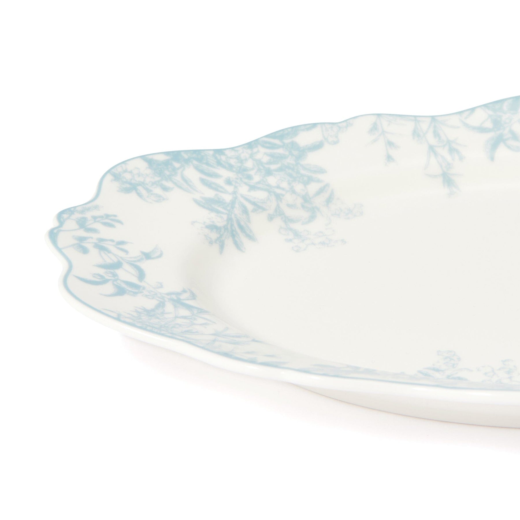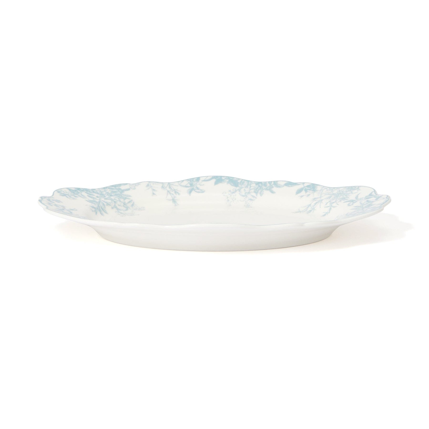 This oval plate features a classic and elegant Toile de Jouy pattern.